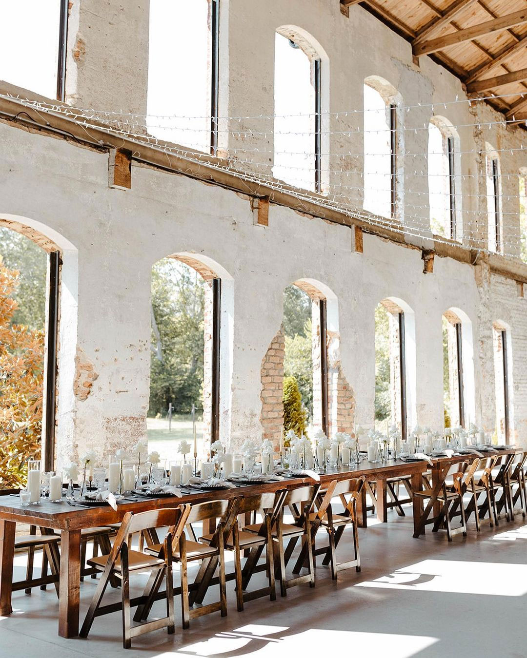 If historic buildings, open air spaces, and white-washed walls strike your fancy, not to mention lush greenery, The Providence Cotton Mill in North Carolina is worth a closer peek. The main hall is a breezy 10,000 square foot open space that’s perfect for ceremonies, receptions, or both. They also have plenty of outdoor space if you prefer a ceremony on the lawn against the brick backdrop of the Mill.