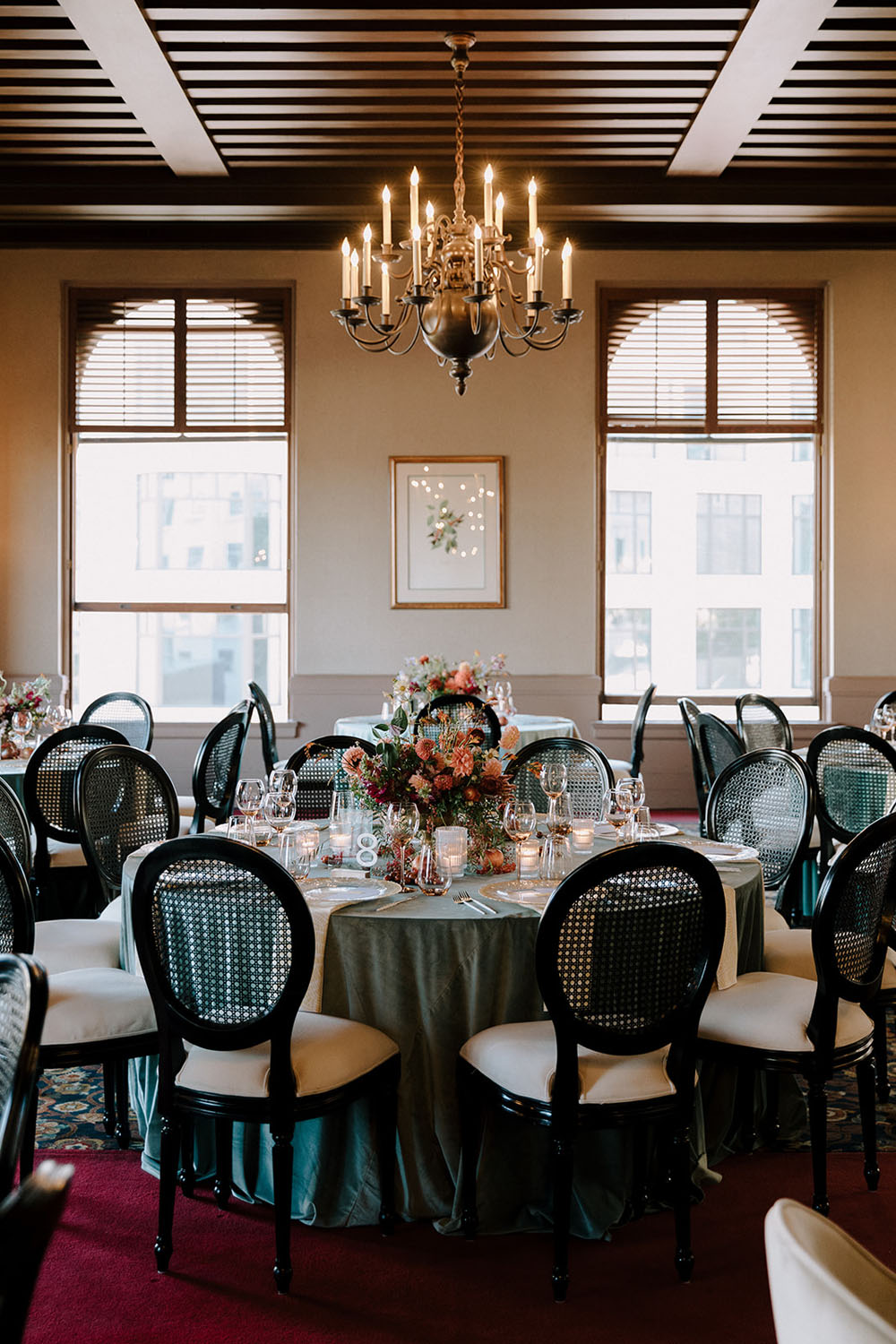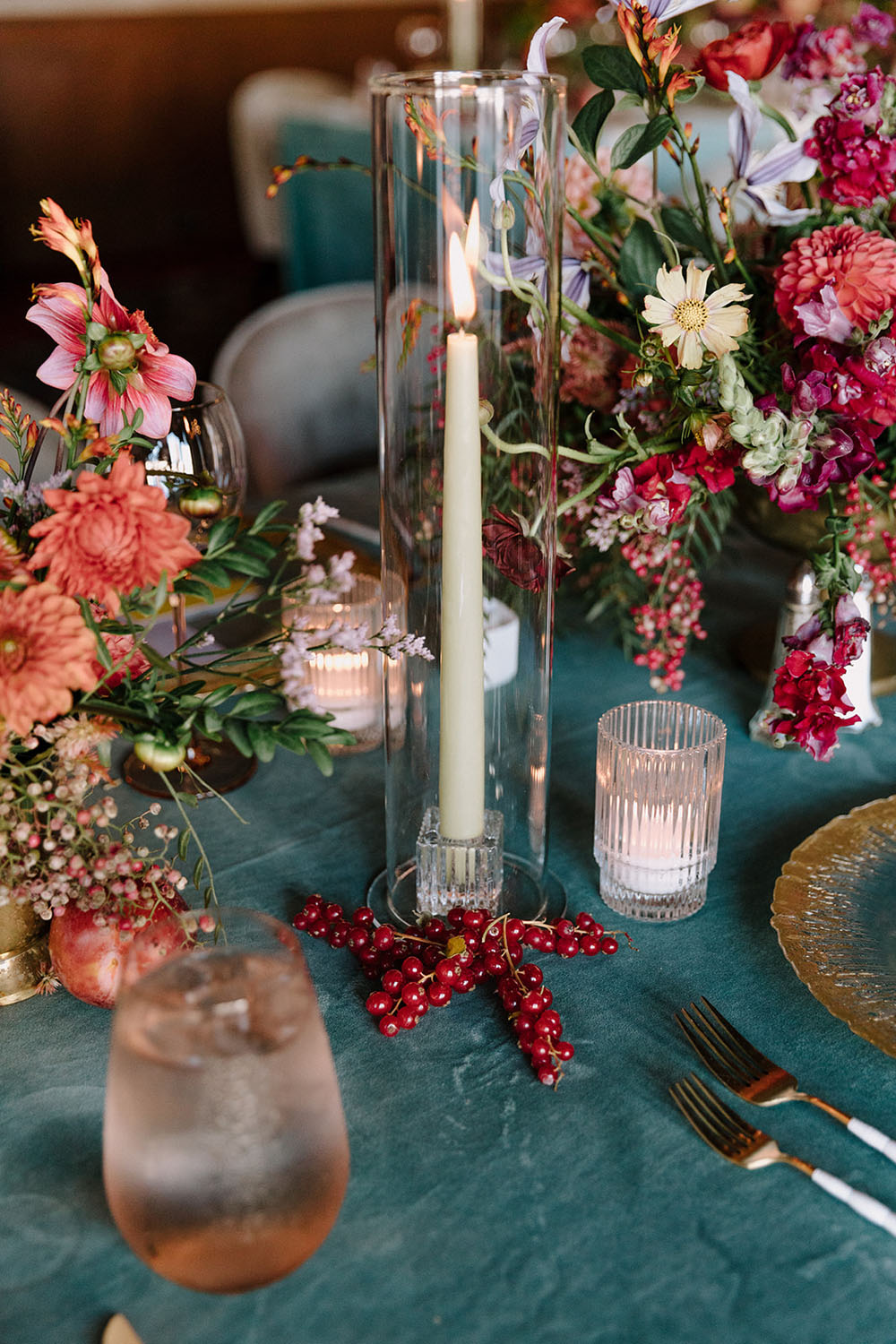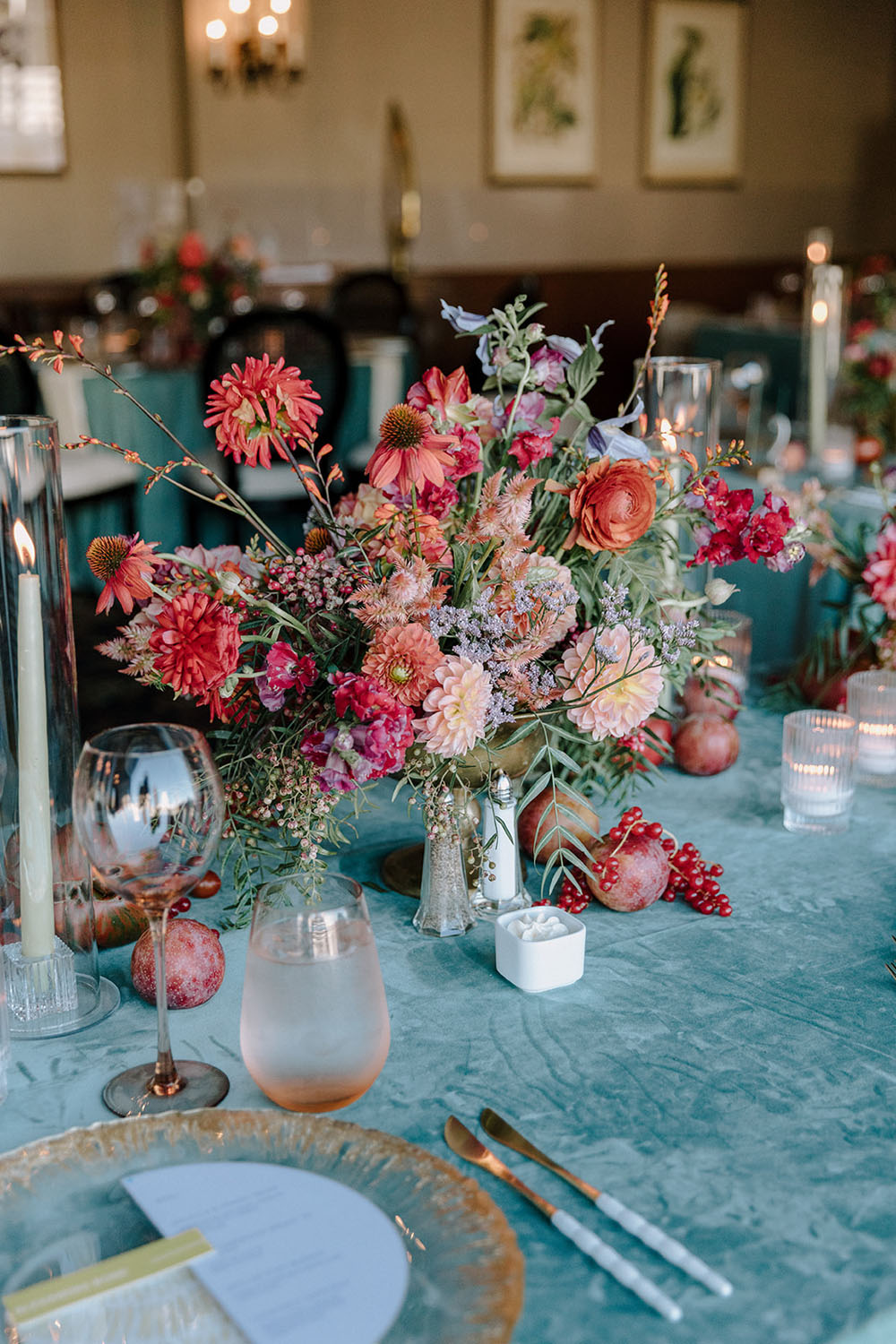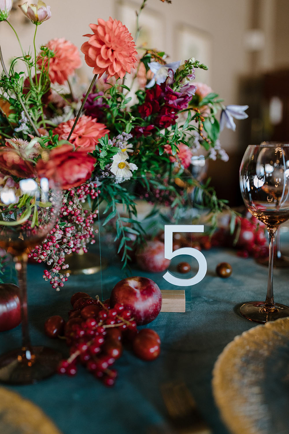 Moody florals and more jewel tones made for a maximalist wedding reception with an autumnal feel fit for their September wedding date.
