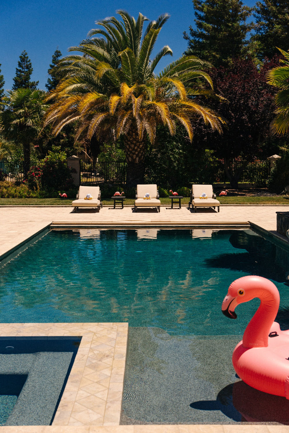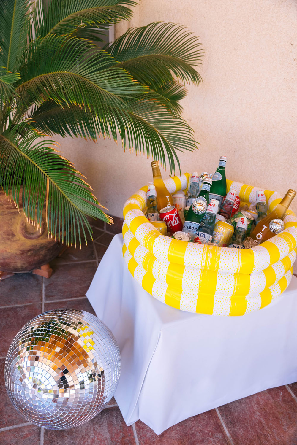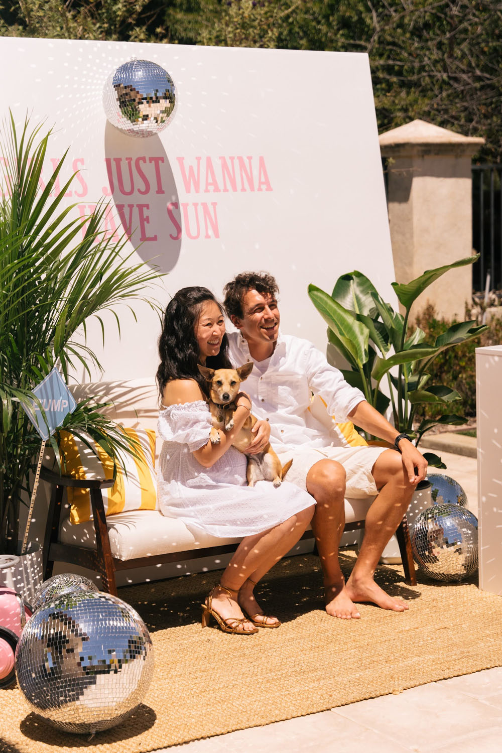 Any mamas here with a summer baby on the way? You’ll love how mama-to-be and planner + graphic designer at Two Perfect Events Yoko channeled her love of Palm Springs into a cheerful poolside baby shower in tones of yellow, blue, coral, and green. Inspired by the quirky, retro aesthetics of Gray Malin and Wes Anderson, the shower made guests feel like they were on a classic Palm Springs vacay without leaving town. Peruse Hannah Eugster‘s photos below to get inspired for your own summer baby shower themes!