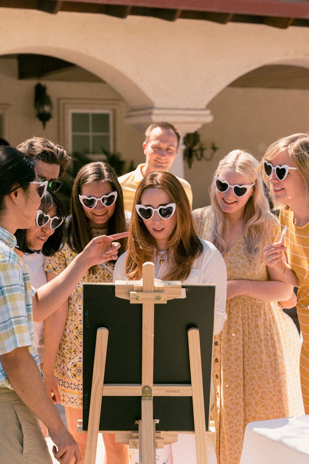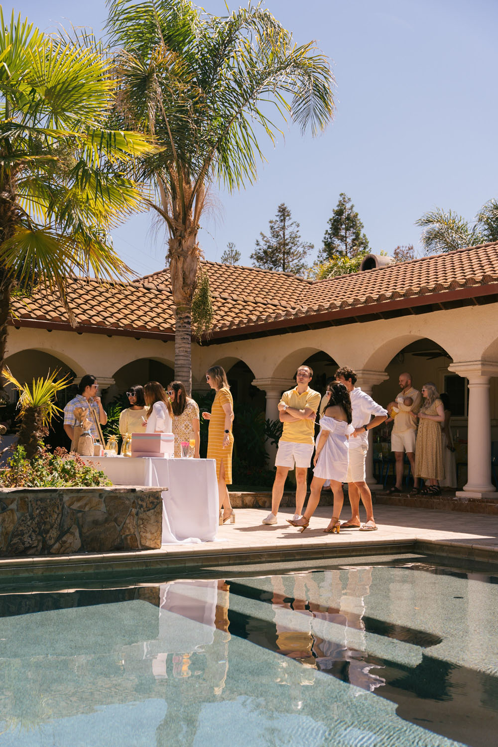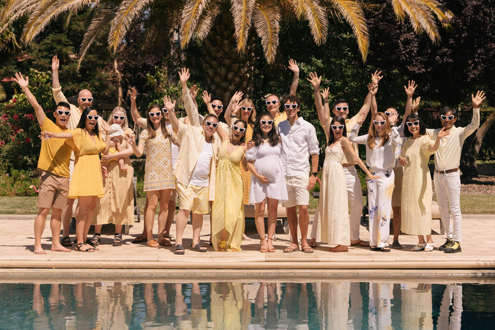 Lastly, everyone—perfectly coordinated in yellow—gathered around the pool for the group photo that would later adorned their signed guest book photo frame.