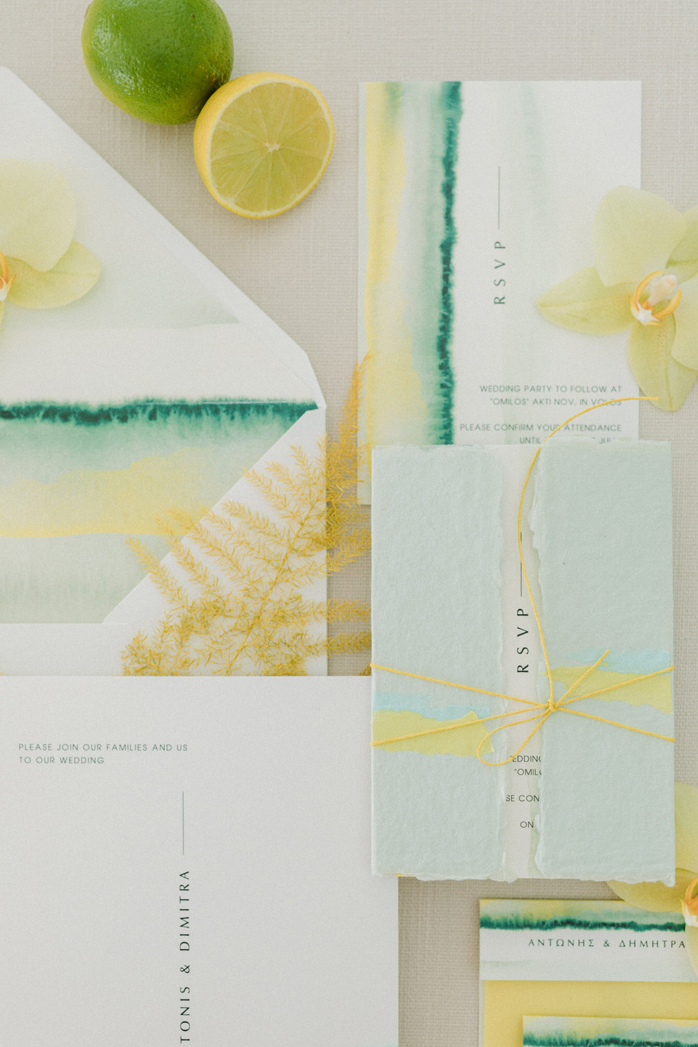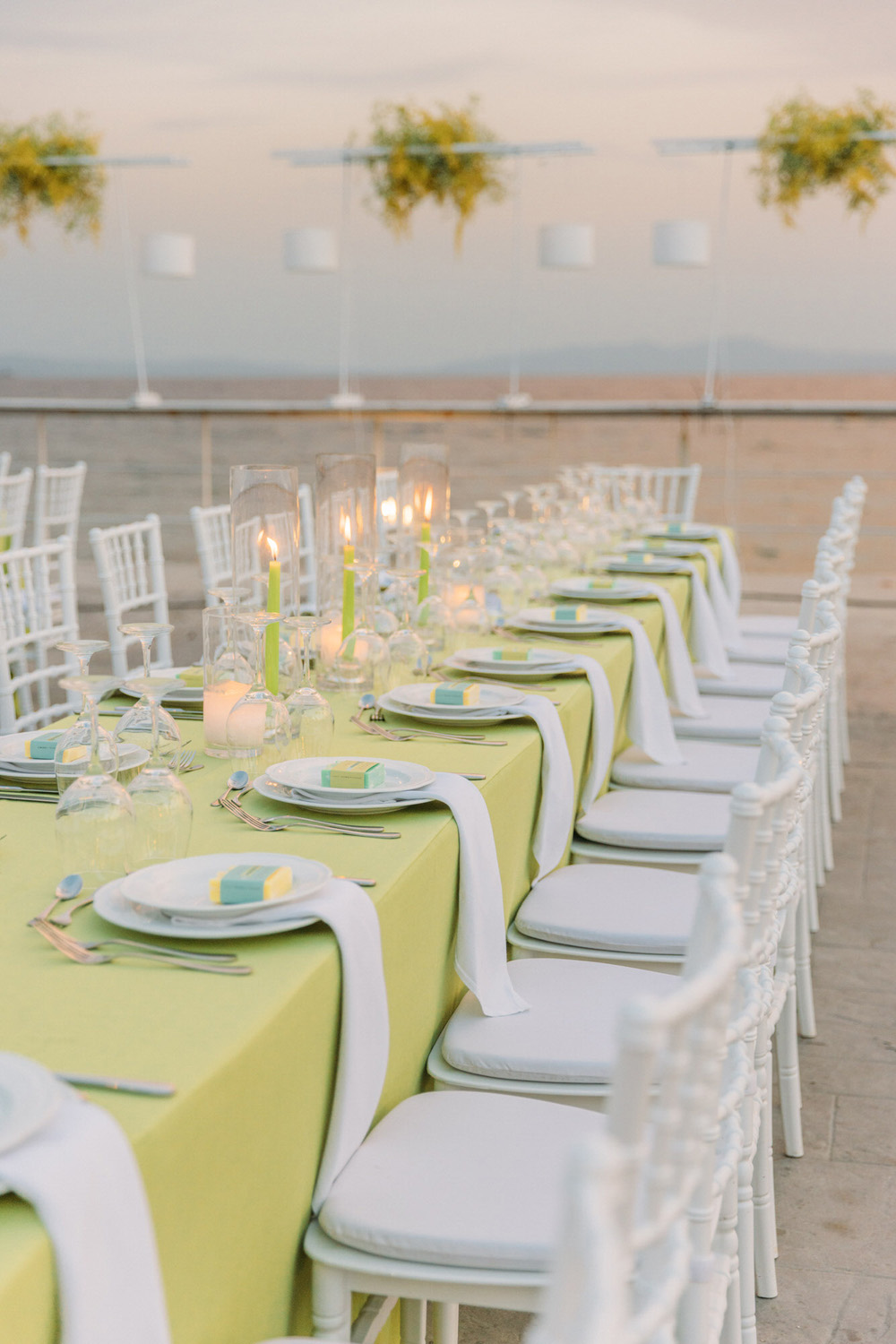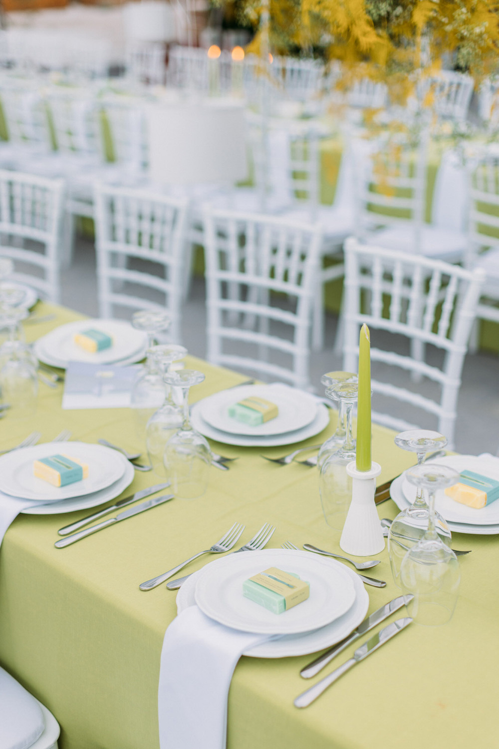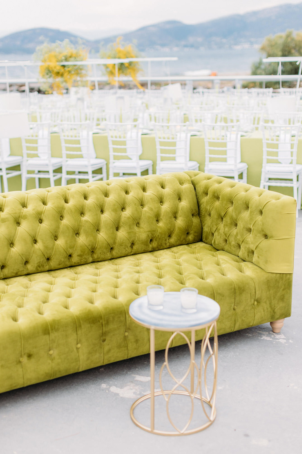 Have an “out there” color on the mind for the fashion or decor on your big day? This wedding, inspired by the work of artist Mark Rothko, proves that even the boldest color can still be luxe and even timeless, not to mention a ton of fun for guests to experience. With a focus on abstract expressionism, the couple and their designer PomPon Story Events, injected lime green into every detail, from the flowers to desserts to stationery and even our bride’s shoes! See how it all turned out from the photos our new vendor guide member Konstantinos Art Studio captured of this lime green wedding in Greece!