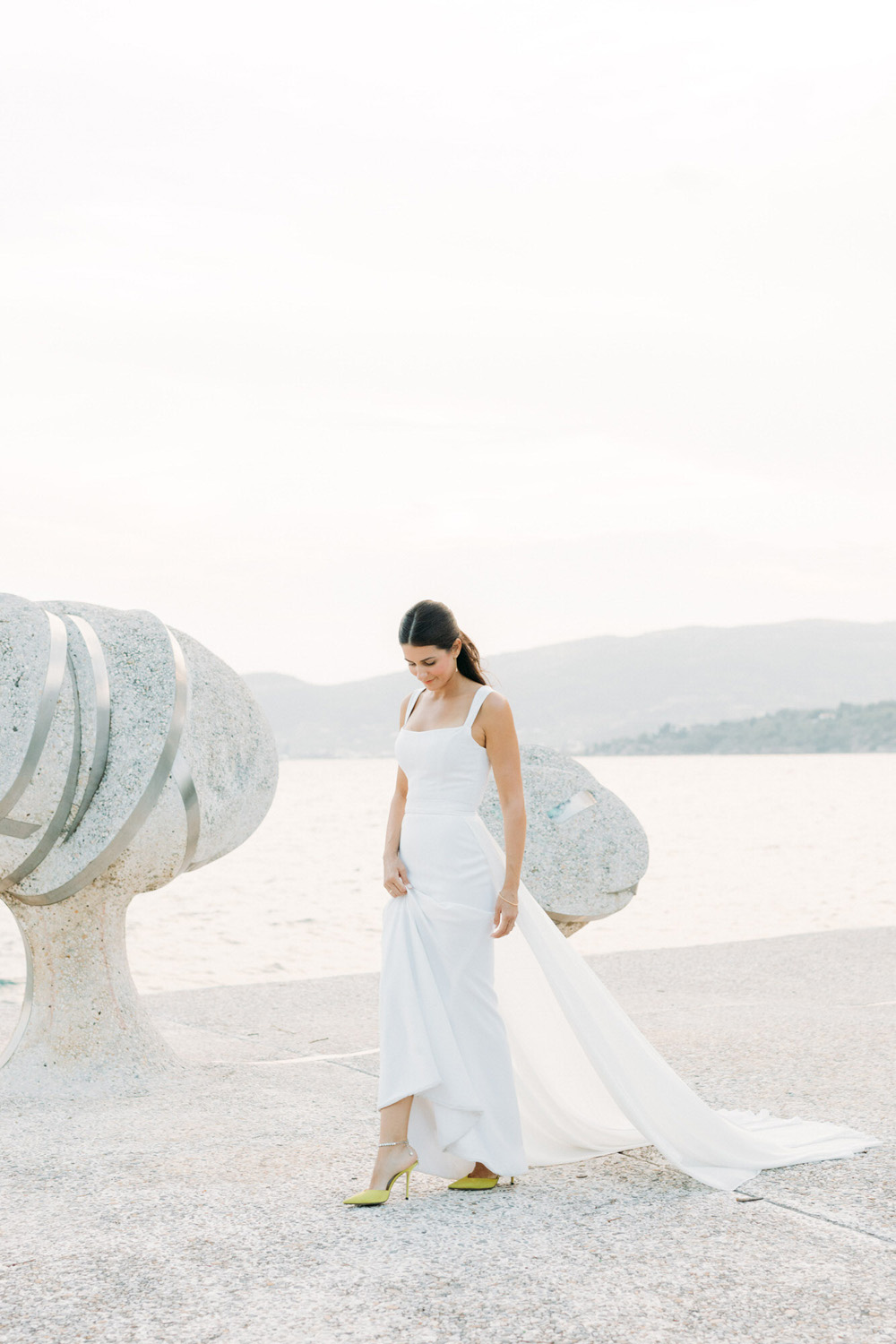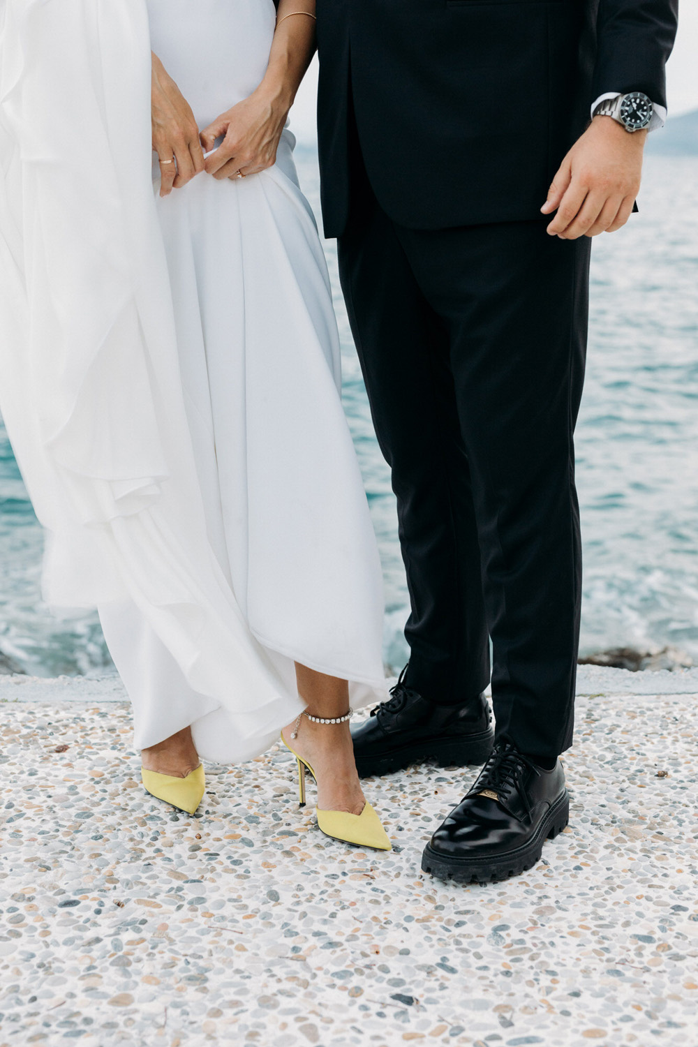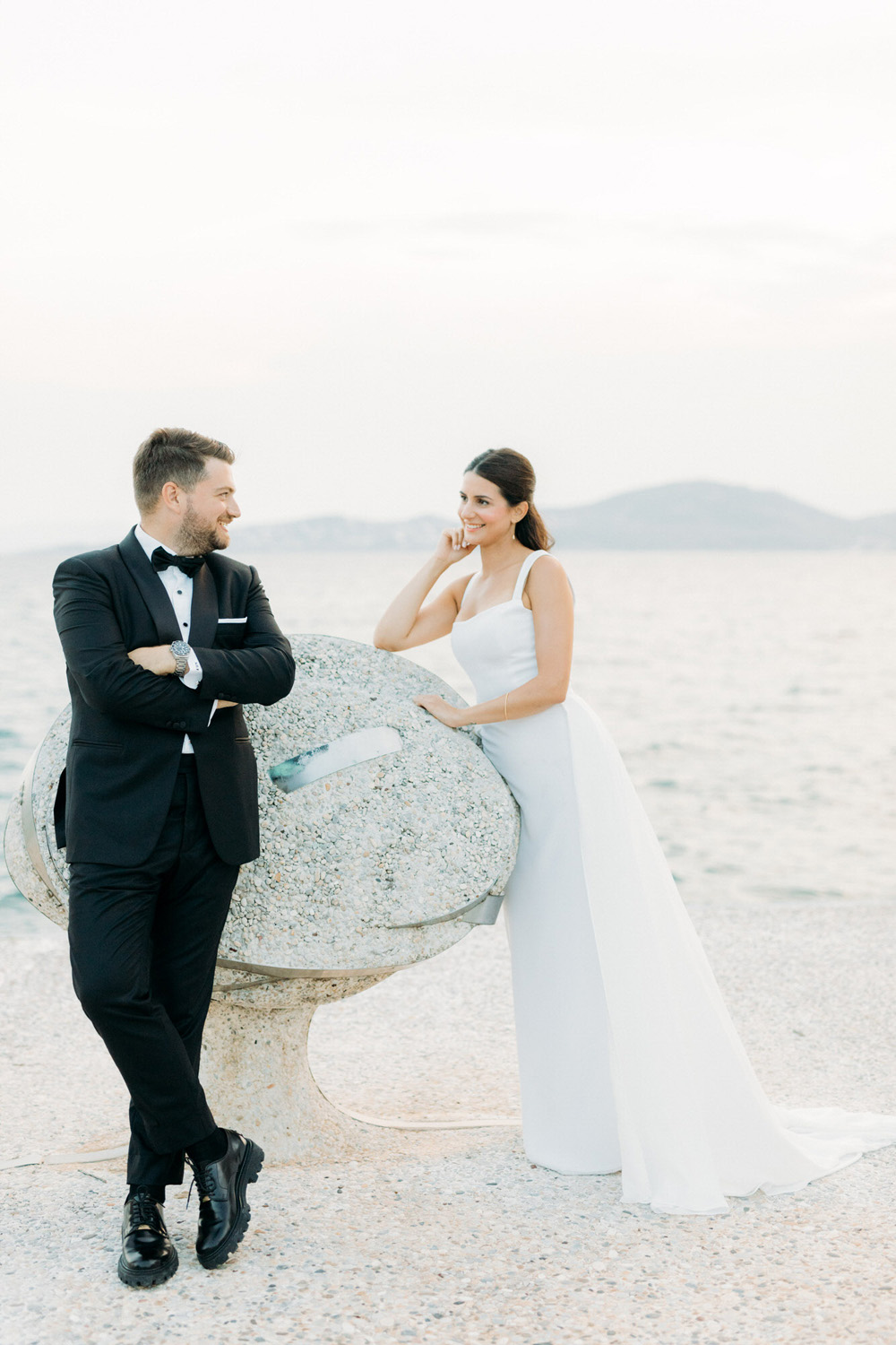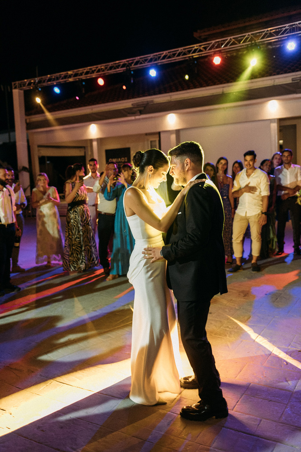 Photography & Filming: Konstantinos Art Studio | Venue: Omilos Akti Nov | Design + Planning: PomPon Story Events | Stationery: Bright White Design | Flowers: Commeca Fleurs | Bridal Dress: Laskos Official | Bridal Shoes: Jimmy Choo | Makeup Artist: Efi Stamouli | Hair Stylist: Sofia Kontonikou | Groom’s Attire: Papadogamvros | DJ: Sartzetakis Actband | Caterer: Memostra | Lights & Sound: Grounds&Lights | Pastry: DeuxK | Grooove Boutique