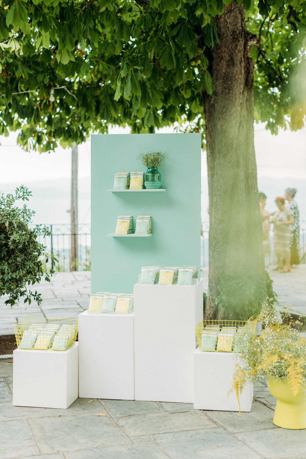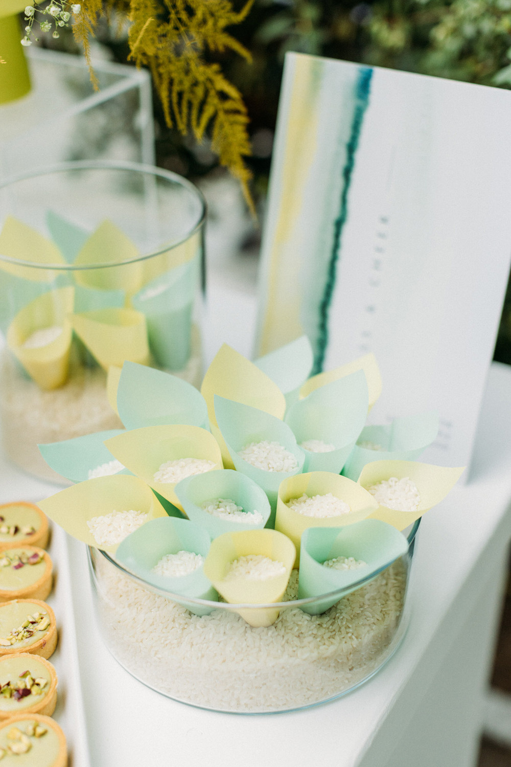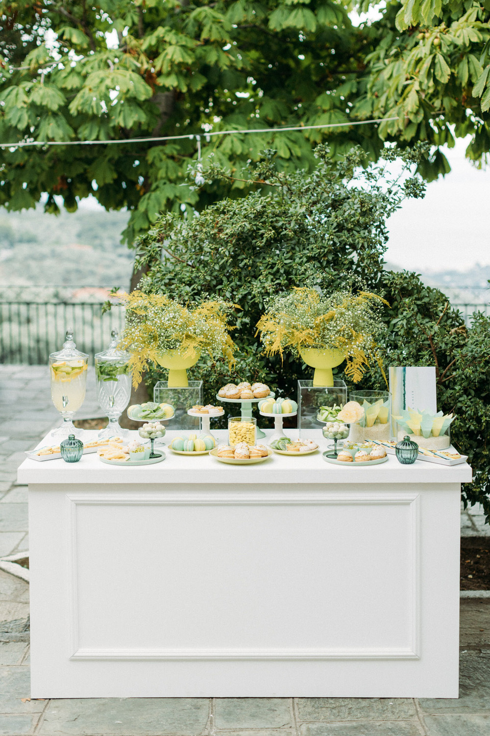 Now THIS is a dessert table… The team included lime green, turquoise, and yellow treats like macarons, mini tarts, cookies, and dried fruit that fit the theme while delighting guests.