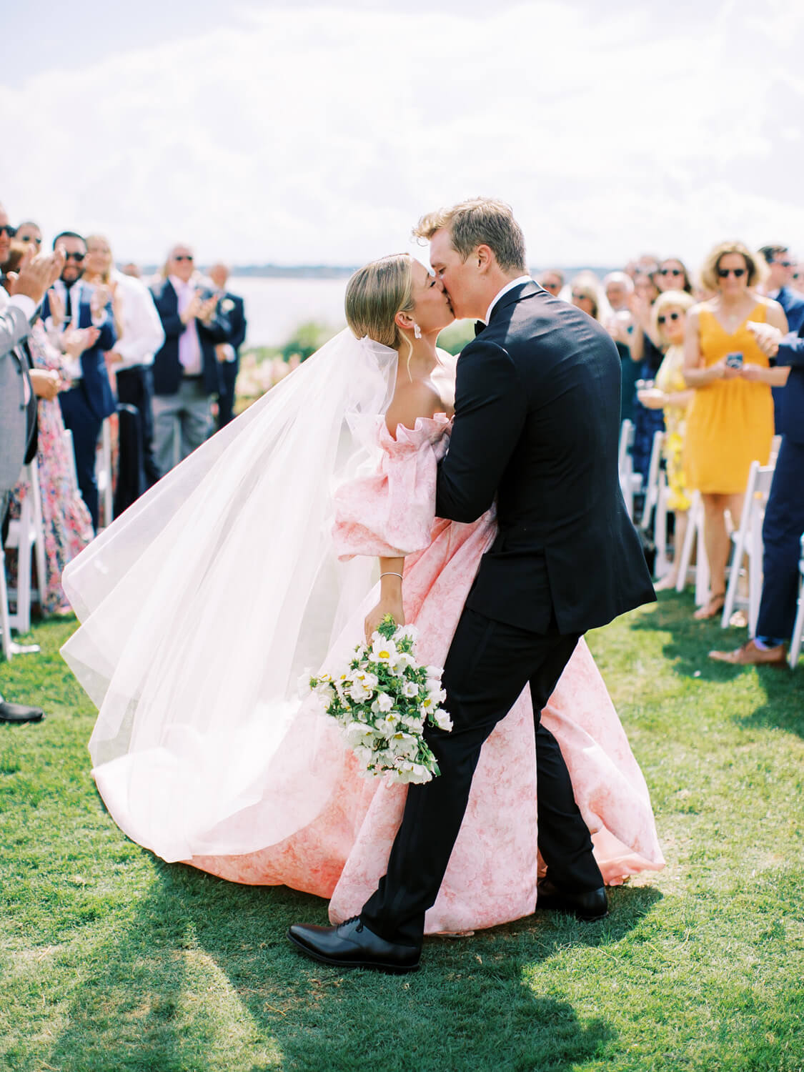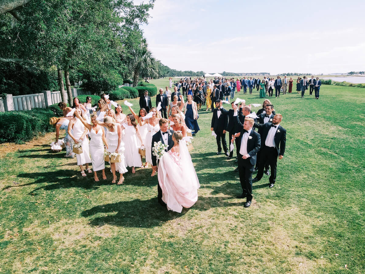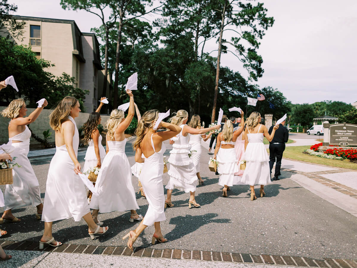 Photography: Perry Vaile Photography | Planning & Design: Grit & Grace Inc | Venue: Sea Pines | Rehearsal Dinner & Welcome Reception Venue: South Carolina Yacht Club | Floral Design: EM Creative Floral | Hair & Makeup: Lashes and Lace | Cinema: Paros Films | Band: The Rivertown Band from East Coast Entertainment | String Quartet: Low Country Music Services | Cocktail Hour Guitarist: Cameron Moore from Other Brother Entertainment | After Party DJ: DJ Jeff Smartz from Other Brother Entertainment | Welcome Reception Music: Deas Guyz | Linens: BBJ LaTavola | Production, Escort Wall & Rentals: Curated Events | Production: Event Works | Lighting: JLK Events | Paper Design & Production: Dandelion Patch | Custom Watercolor & Illustrations: Laura Lines Calligraphy | Transportation: Old Savannah Tours, Diamond Transportation, Sea Pines Trolley | Ice Cream Cart: Leopold’s Ice Cream | Wedding Dress: Monique Lhuillier