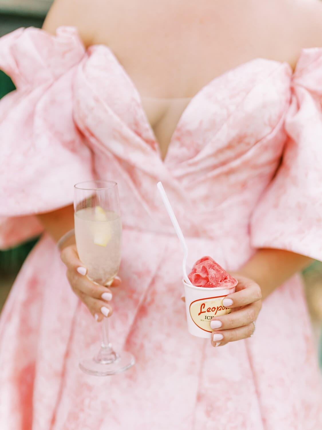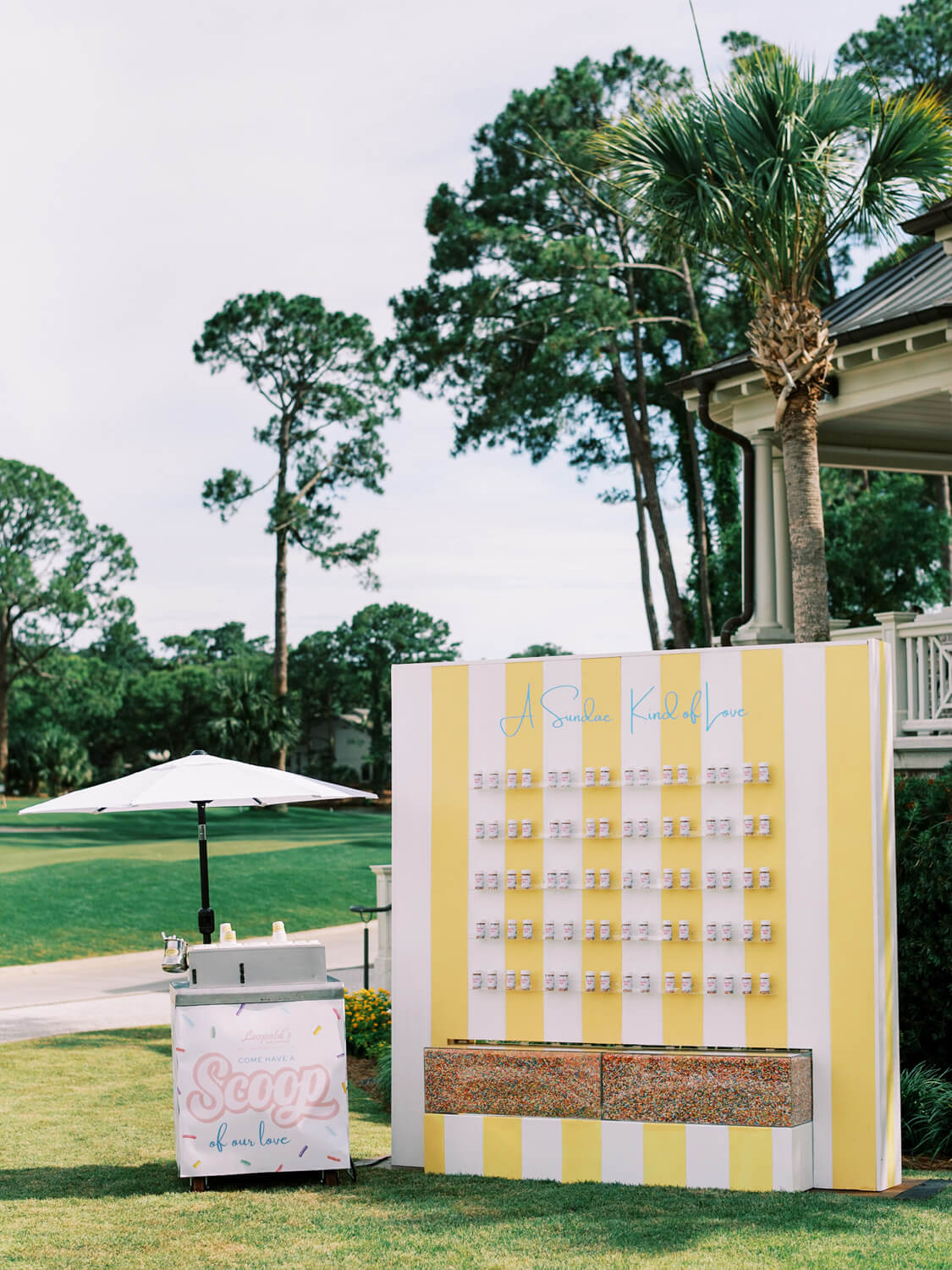 Any ice cream fans looking for a creative escort card idea?! M + P love their ice cream—whether it’s to make bad days better or to celebrate the best ones like saying I Do—so their Leopold’s Ice Cream cart and custom ice cream sundae wall with sprinkle favors incorporating guests’ table numbers was a fabulous homage.