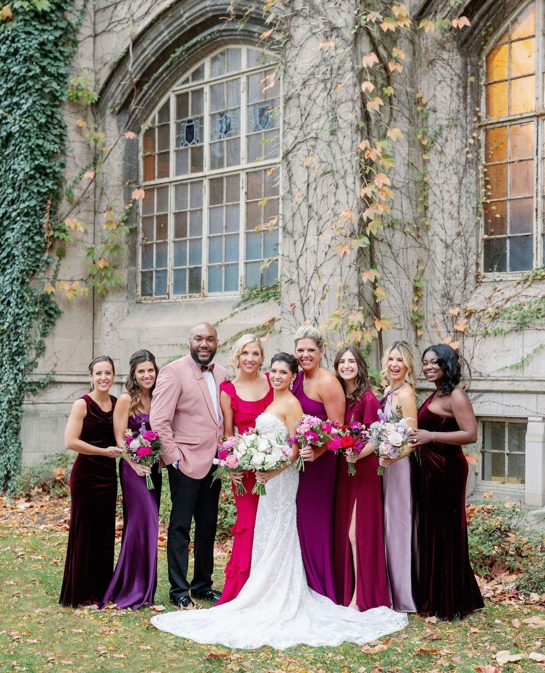 There’s no need to forgo color just because you aren’t having a spring wedding. Choosing a jewel toned wedding color palette allows you to get creative with color without feeling out of place for the season. This gradient of fuchsia, pink, and mauve above is perfect for a December wedding whether your ceremony is indoors or out.
