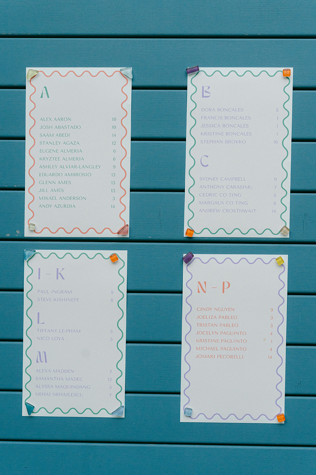 Fun DIY seating chart idea! Love the playful color combos here. Those of you planning can find more colorful wedding ideas right here.