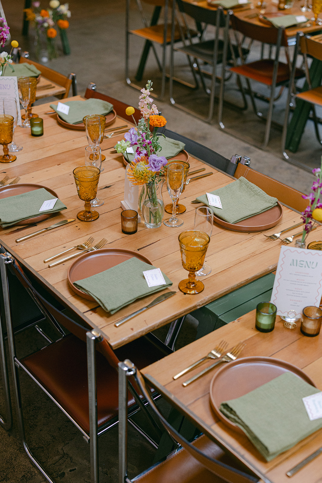 • All paper goods such as their colorful menus, save the dates, invites, and signs were DIY. (BTW, if you like this vibe, check out these downloadable invites!)