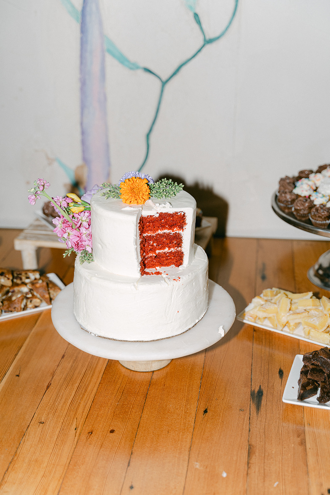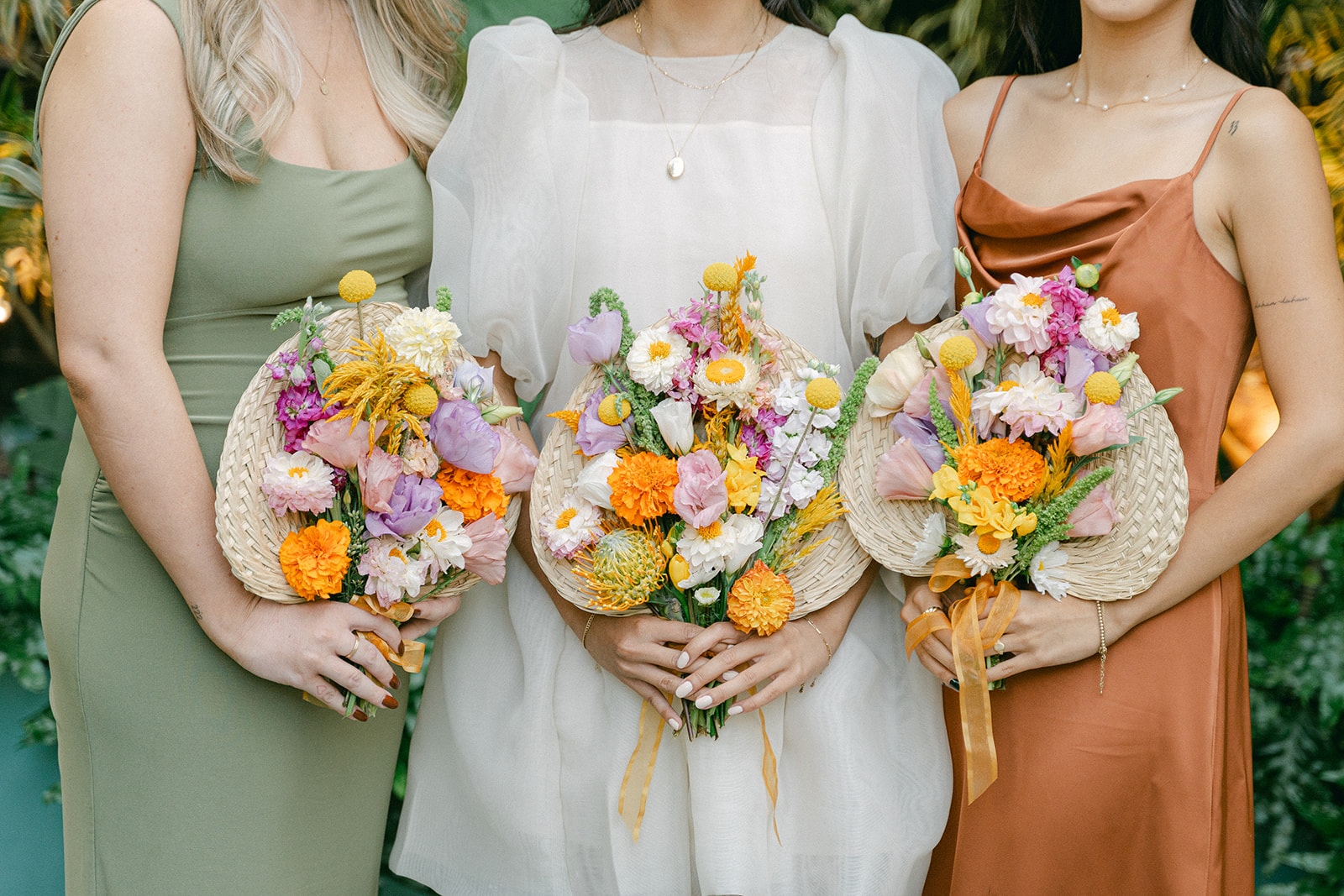 • Kate and Noah opted out of hiring a floral designer, and instead selected flowers from the DTLA flower market, then arranged the bouquets and vases themselves.