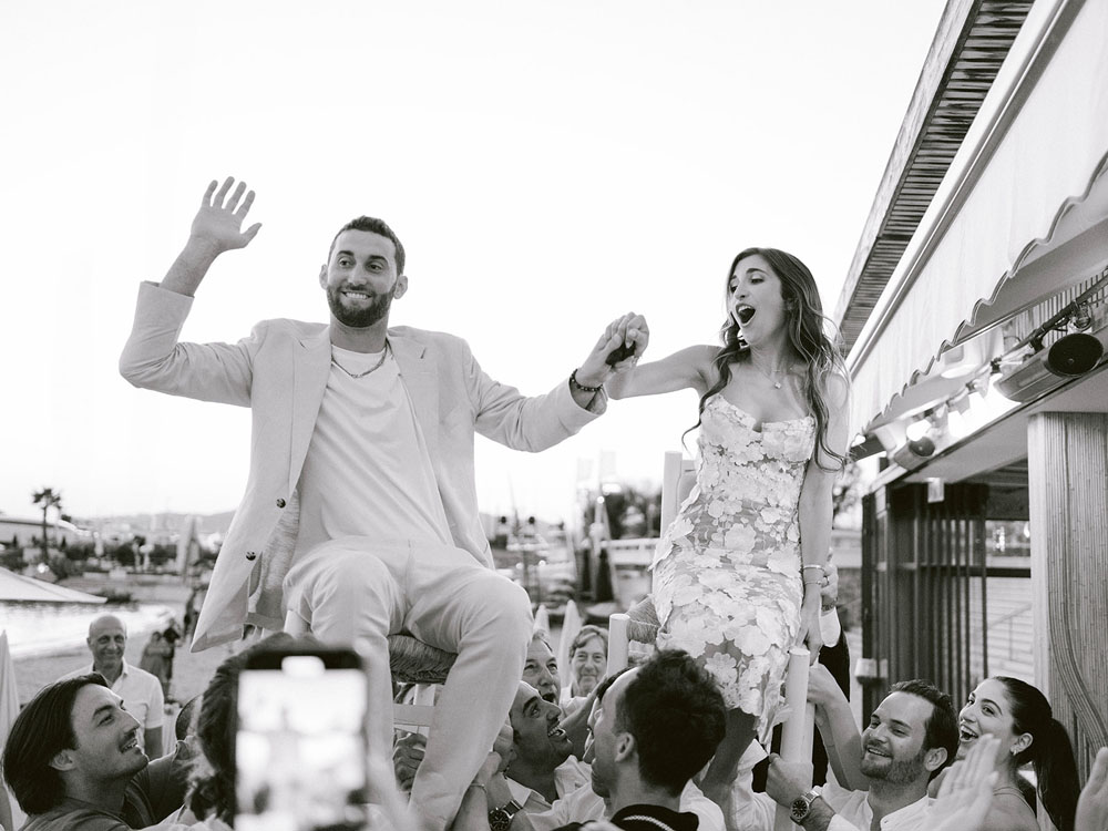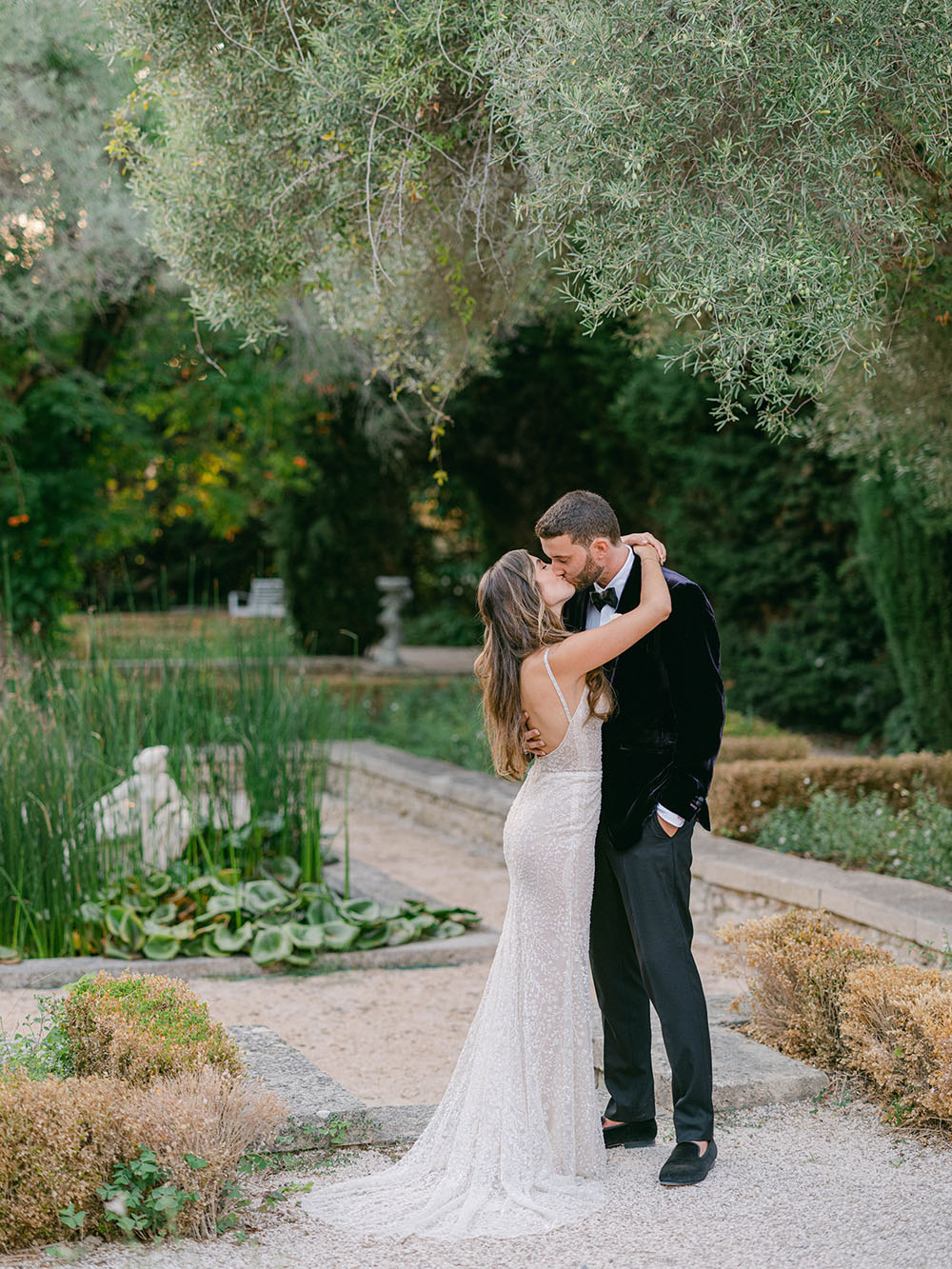 Planning & Design: Wanderlust Wedding | Photographer: Thomas Audiffren | Second Photographer: Andrea Mariño | Filmmaker: Innar Hunt Films | Second Shooter: Madis Kask | Venue: Bastide du Roy in Antibes, France | Flowers: Sisters & B Floral Design | Rentals: Options France | Lounge Rentals: Balm Furniture Rental | Hair & Makeup: Les Jolies Filles | Cocktails: DNA Bartending | Lighting: Audio Visions France | Band: Your Dream Band | Catering: La Cinquième Saison Traiteur | Stationery & Flatlay Design: Crème de Papier | Bride’s Dress: Galia Lahav