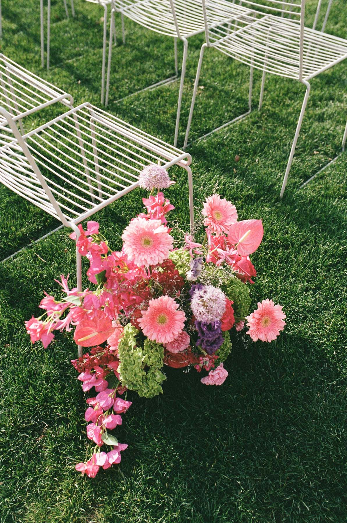 Aren’t these pink and purple wedding flowers by Sparks and Sand just spectacular? Especially when paired with Amanda’s killer suit!