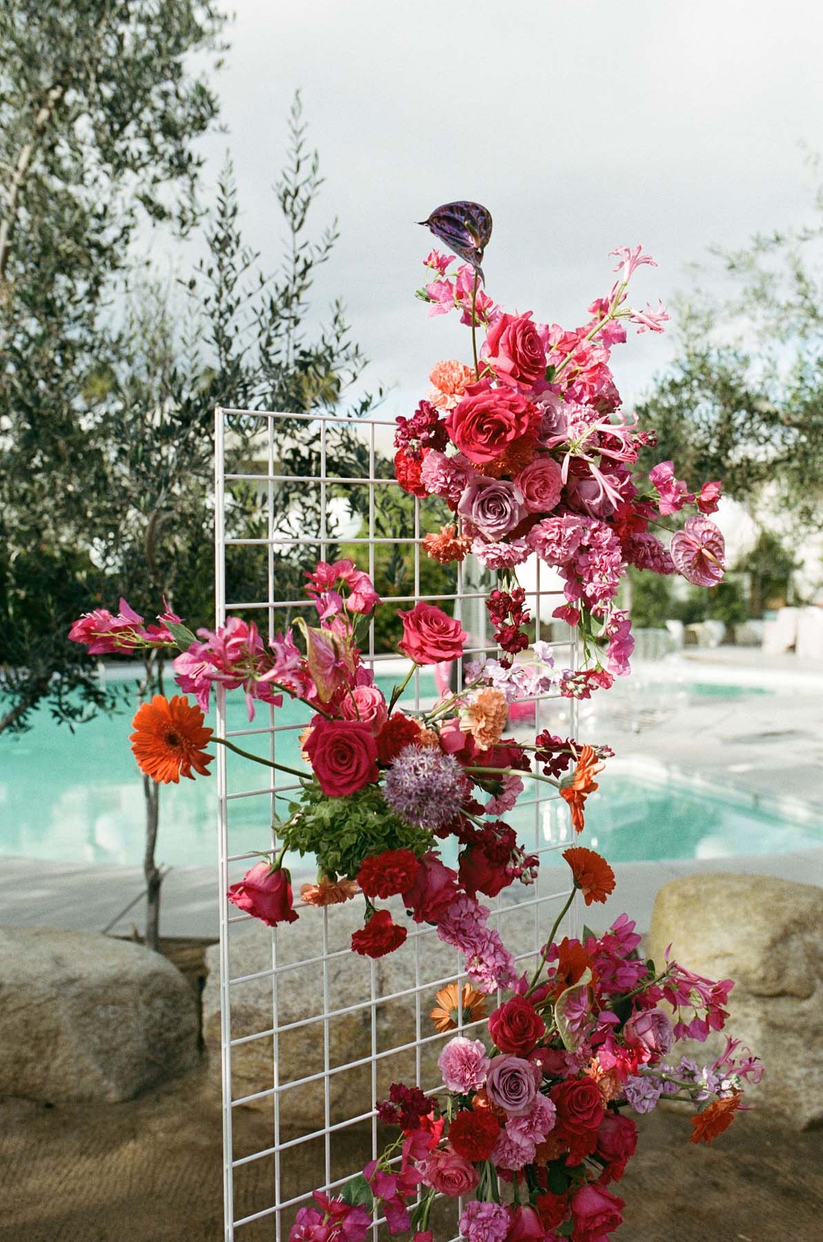 From the couple… We always knew we wanted to go for a non-traditional look and feel, because we’re non-traditional gals! Our vibe was bright, colorful, and FUN, and we also incorporated a few Y2K elements, like a hot pink inflatable couch for the lounge area, which everyone (even our parents and their friends!) wound up using for photos. The second we toured the Ace Hotel we knew it was right. It felt like quintessential, mid-century Palm Springs without feeling too fancy or stuffy. We were also impressed by how detail oriented the staff was from our very first encounters. And people had great things to say about the food, which helped.