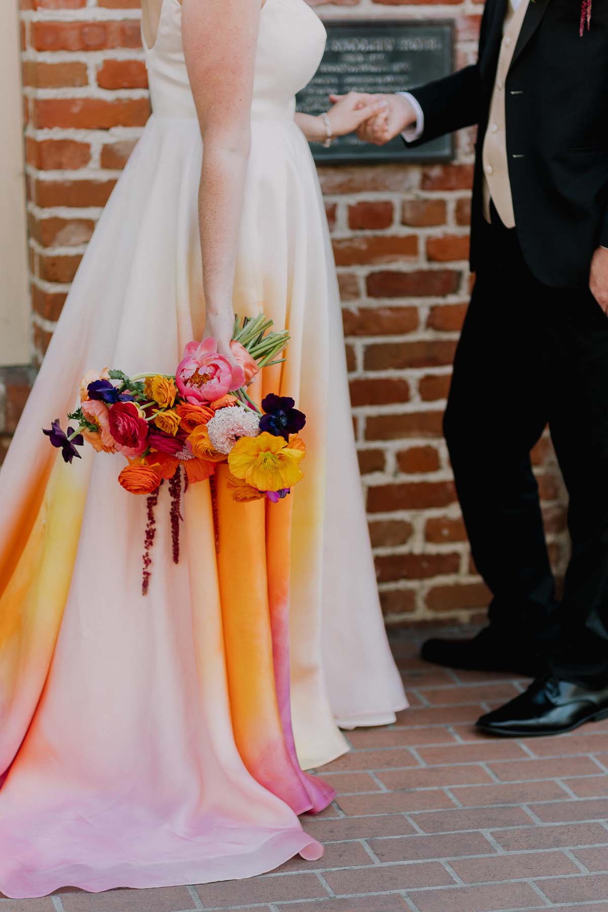 A colorful wedding dress and ribbon wands for the ceremony = some seriously joyful photos.