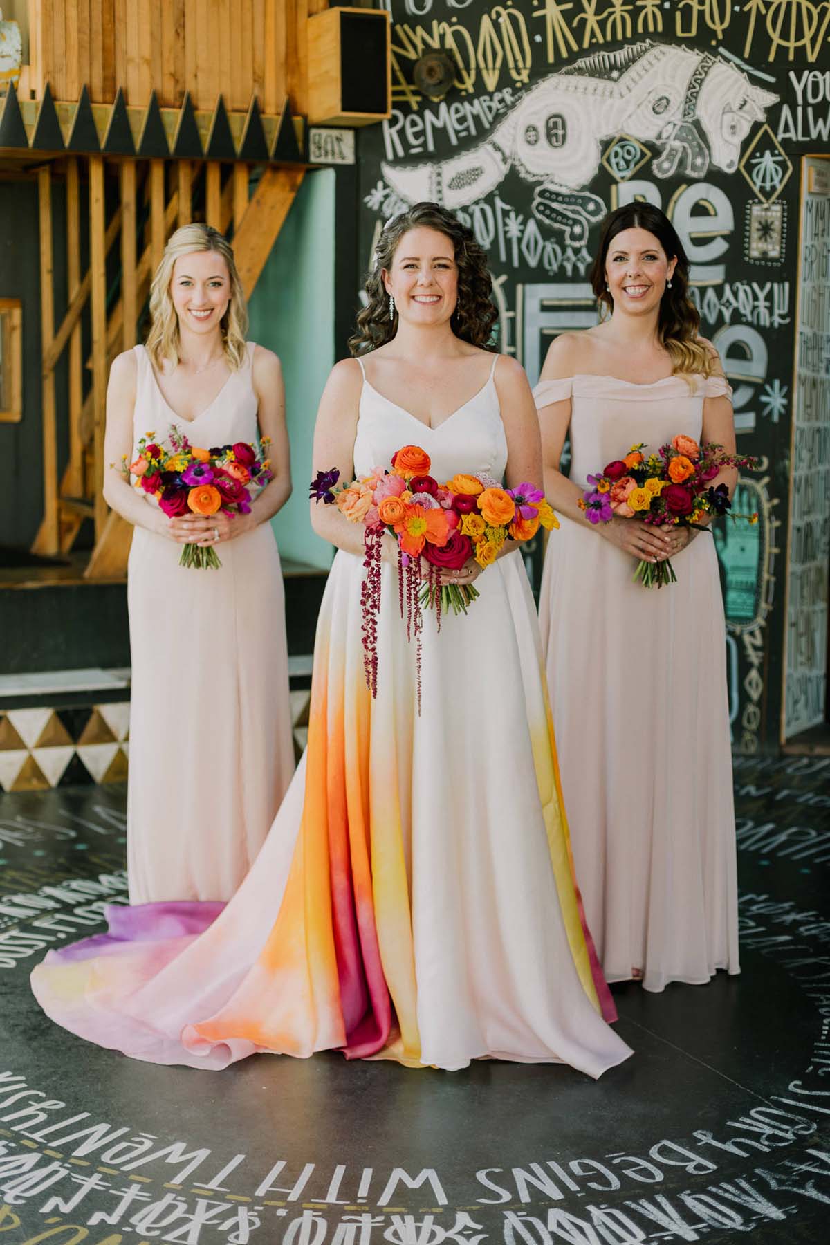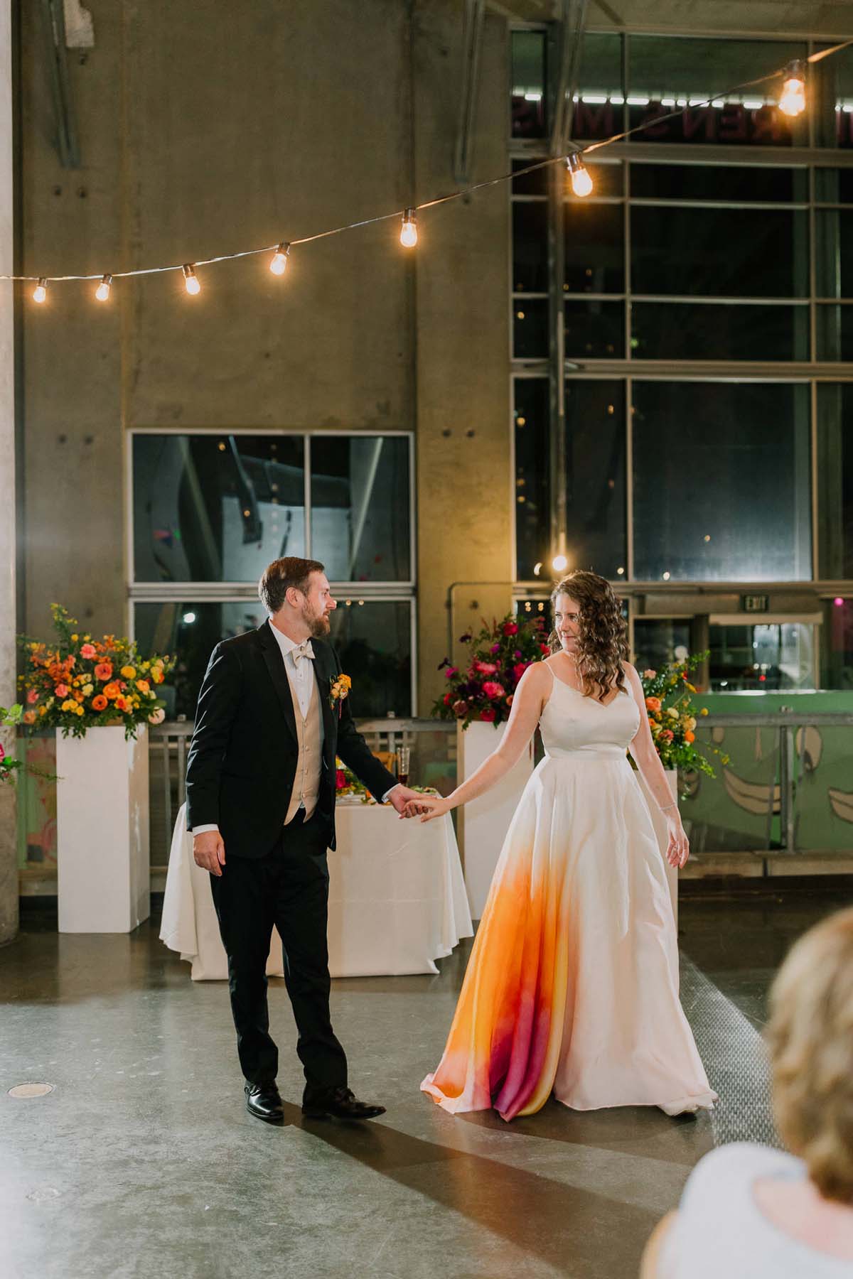 Photography: Lets Frolic Together | Ceremony Venue: Horton Grand Hotel | Reception Venue: New Children’s Museum in San Diego | Planning: Jacquelynn Jean Events | Florist: Terra Cotta Studio | Hair: Ziel Bridal | Makeup: Elizabeth Root | Catering: Culinary Concepts | Bar Service: San Diego Wine & Culinary Center | Dessert: Stella Jean’s Ice Cream | Rentals: Raphael’s Party Rentals | Band: Lucky Devils Band | Custom Colorful Wedding Dress: Elizabeth Dye | Bridesmaids’ Attire: The Dessy Group | Hotel for Getting Ready: Marriott Marquis San Diego Marina