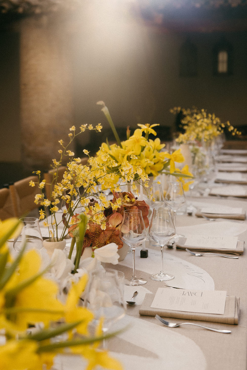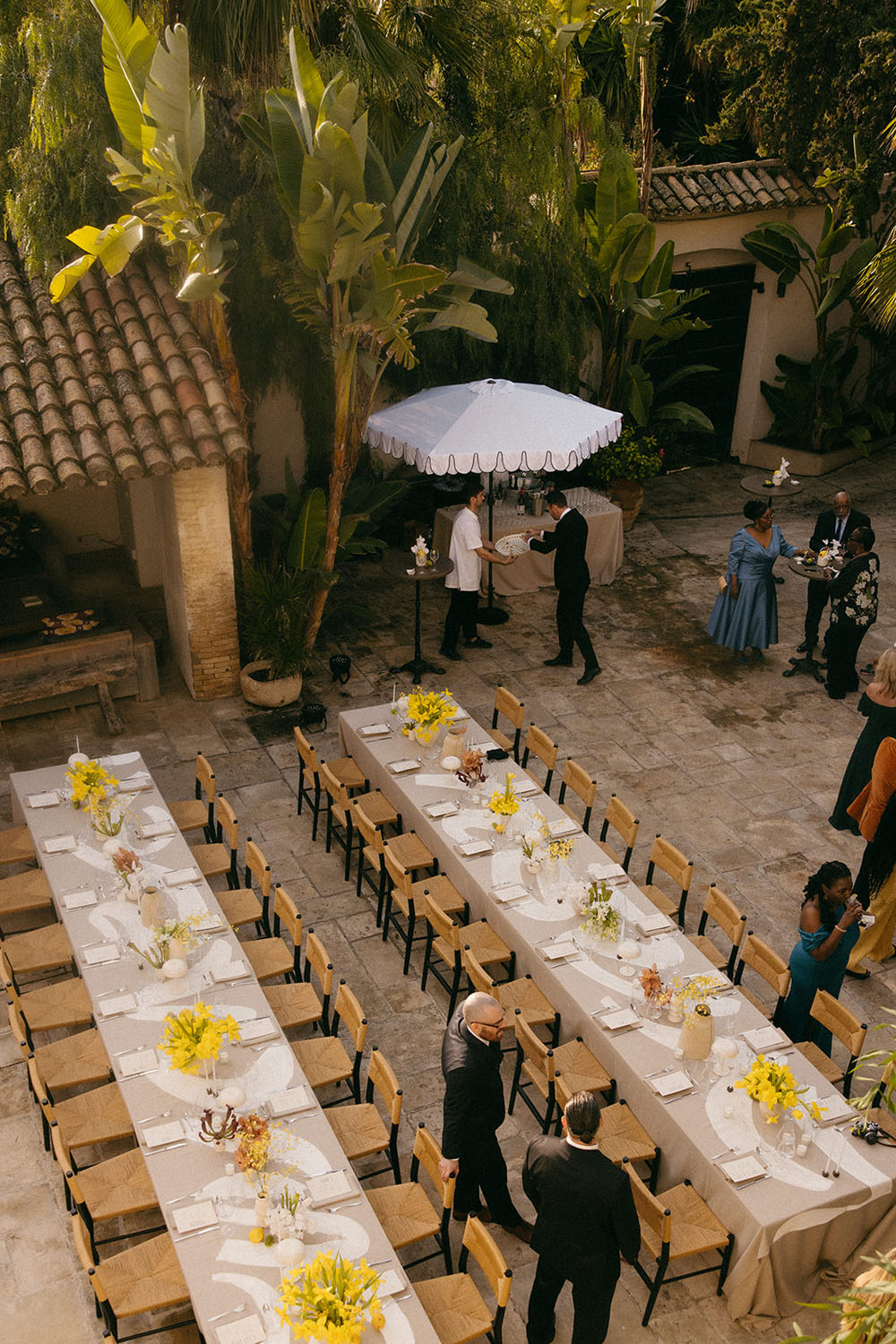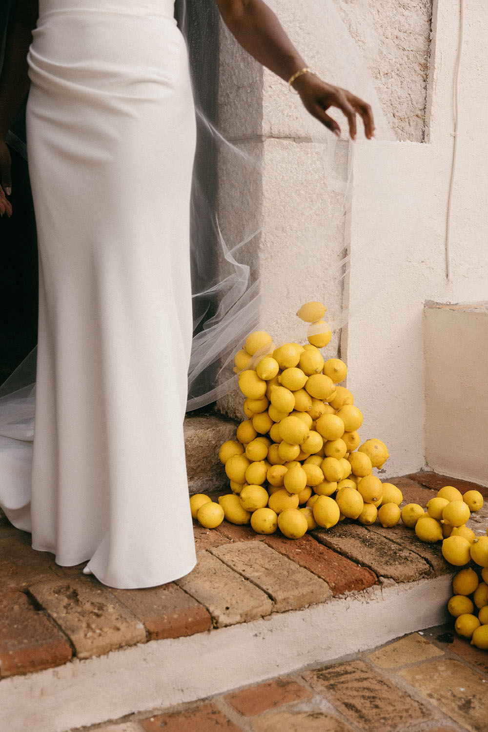 When LeAnna + Colton met in San Diego, they had both been to and loved Spain. It wasn’t long before they traveled there together, showing each other their favorite places in the country. Eager to share that experience with their loved ones too, a destination wedding was a no brainer. Planning team Dos Santas + florist Estudio Sauvage helped them bring their vision for a relaxed, intimate vibe with a splash of modern design to life with lemons, yellow flowers, and artistic details. If you’re a fan of the latest wedding trends, their draped fabric arch and custom painted table cloths are just a few details you’ll love. See this Barcelona wedding at Masía Victoria captured by Mónika Frías below!