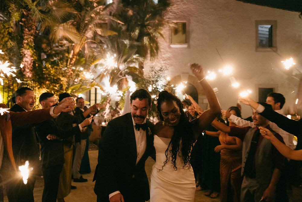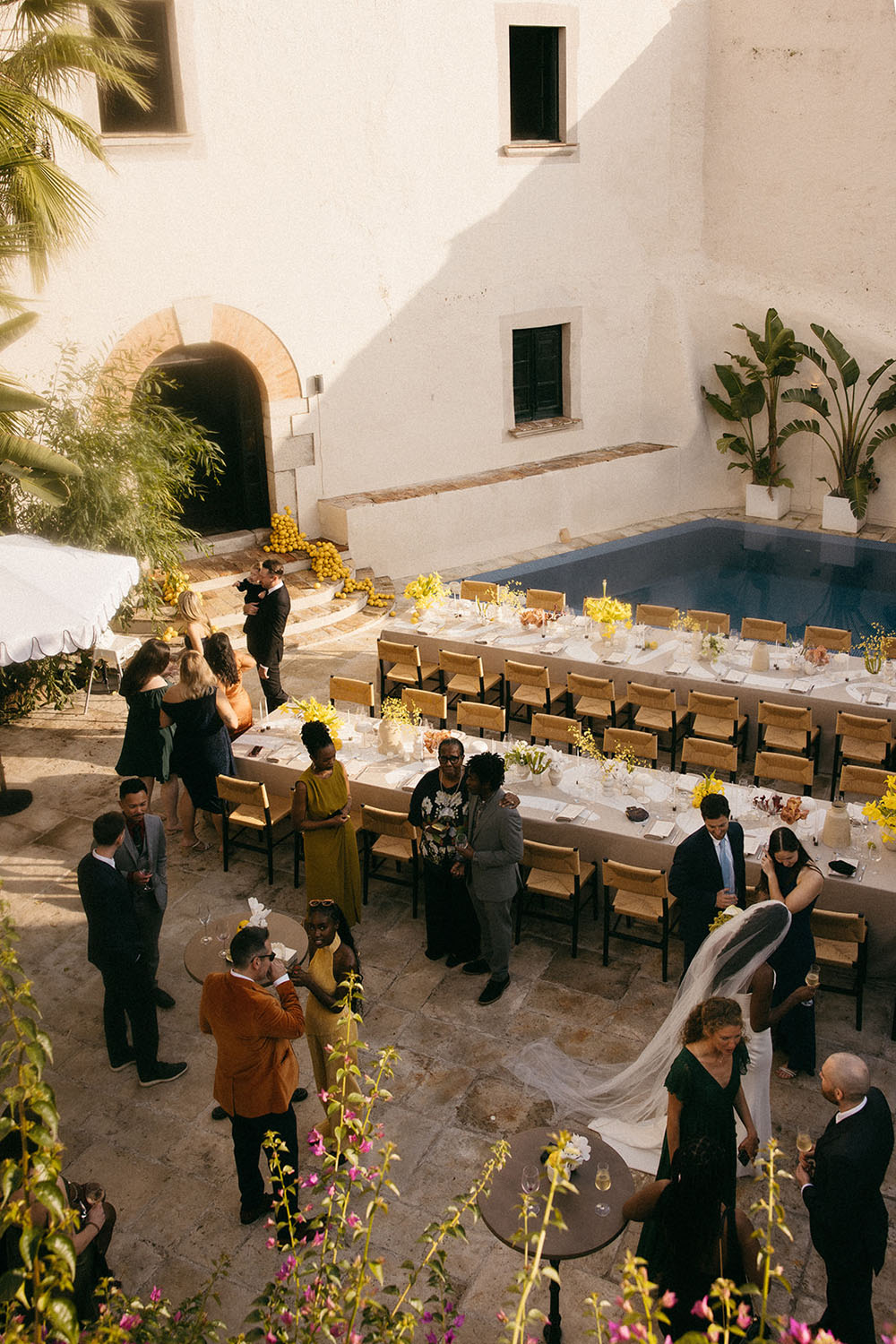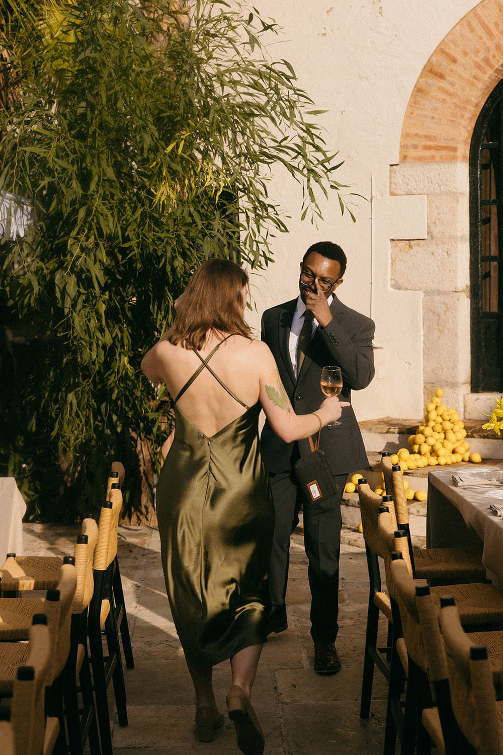 When LeAnna + Colton met in San Diego, they had both been to and loved Spain. It wasn’t long before they traveled there together, showing each other their favorite places in the country. Eager to share that experience with their loved ones too, a destination wedding was a no brainer. Planning team Dos Santas + florist Estudio Sauvage helped them bring their vision for a relaxed, intimate vibe with a splash of modern design to life with lemons, yellow flowers, and artistic details. If you’re a fan of the latest wedding trends, their draped fabric arch and custom painted table cloths are just a few details you’ll love. See this Barcelona wedding at Masía Victoria captured by Mónika Frías below!