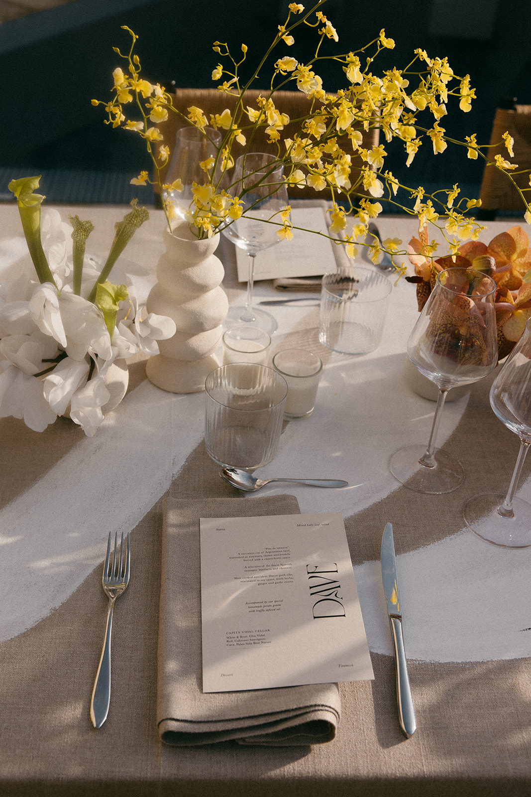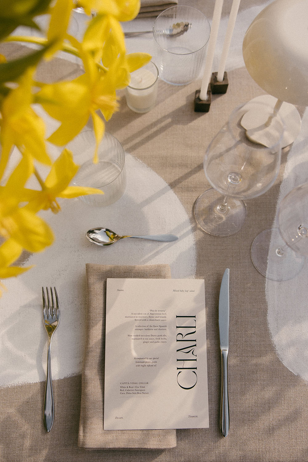 Photography: Mónika Frías | Venue: Masía Victoria in Barcelona, Spain | Planning & Styling: Dos Santas | Floral Design: Estudio Sauvage | Stationery, Signage, & Custom Tablecloth: Better & Co. | Rentals: Abanik Rent & Events | Light & Sound: Artifice Events | Makeup & Hair: Eli García