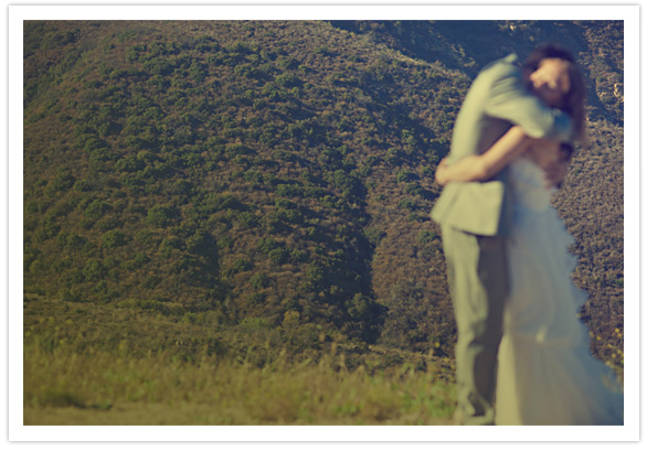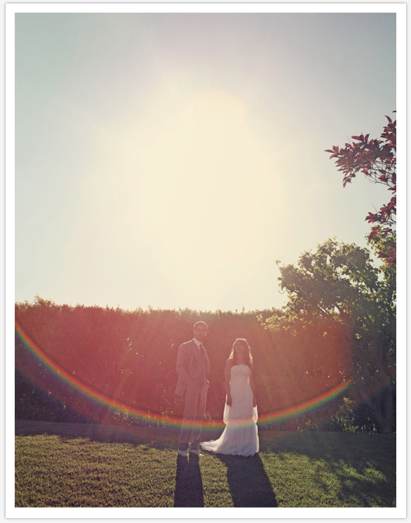 “The couple decided that they wanted a very simple, practical, wedding. They leaned heavily on their amazing friends and warm, friendly, family to create an atmosphere where they could be themselves, be in love, and have as much fun as is humanly possible without being wasteful, or doing anything that didn’t represent them as individuals, or as a couple. They had the ceremony, cocktail hour, dinner, and reception on the lawn of Ben’s dads’ house in Malibu with 180 degree views of the ocean on one side, and of the desert mountains on the other (lucky!) The food was hand picked from the local farmers market and prepared in the family kitchen, the wine was hand made by a close family friend, and Ben even got on the turntables for an hour or so (he is a very good house dj!) Two things that were very important to them were music, and photography… Ben has been a dj for years and knew that the music had to be just right! They had a local student jazz band play some cool west coast jazz during dinner, and a classic cocktail lounge piano man play some standards in addition to some kitchy lounge tunes during cocktail hour.