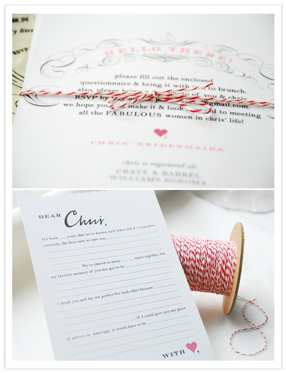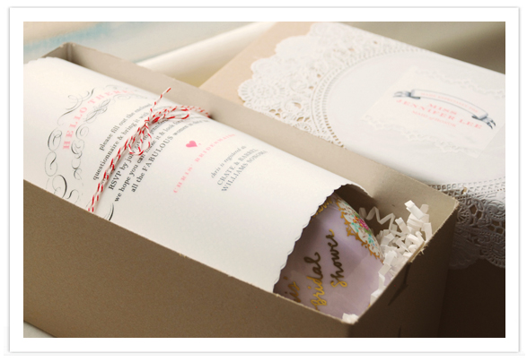 The finished invite was literally a box full of goodies, tied up in baker’s twine and sent off to guests. If that doesn’t get you pumped for a bridal shower, we can’t imagine what would.