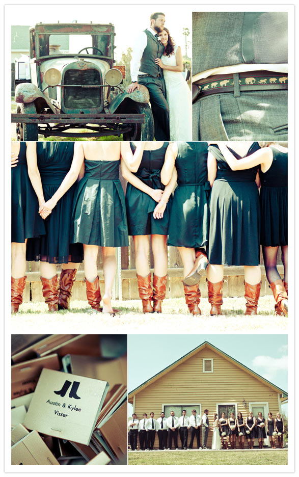 Kylee took on pretty much every DIY project possible and it shows in their super personal, extra intimate party. Recycled wine bottles for vases, handmade cake toppers, invites, garter, bouts, corsages, programs, favor bags, etc etc etc. She gets gold stars for doing her whole wedding herself, and loving the entire process.