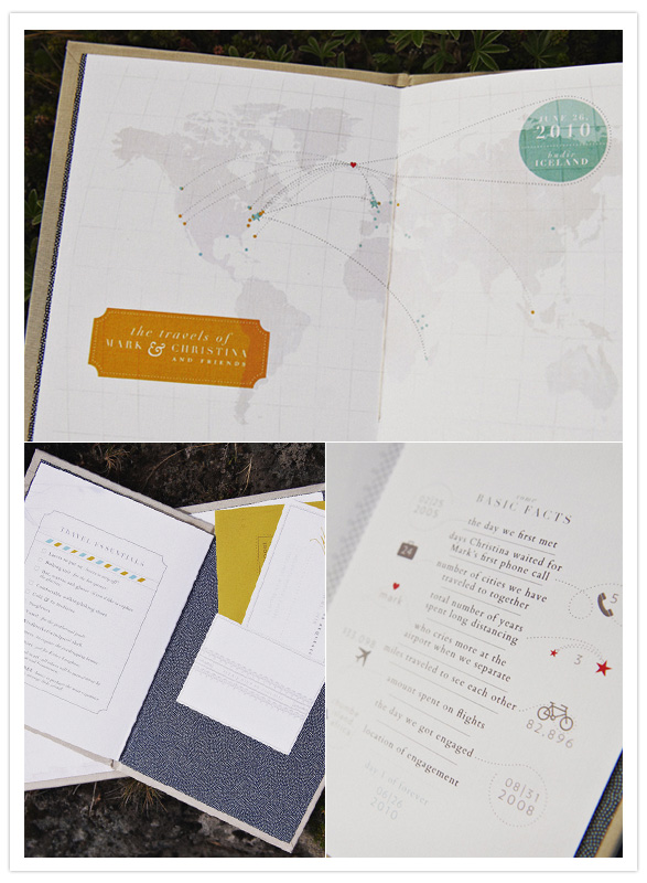 Their invites, designed by Sarah Hanks, were little books documenting not only the wedding festivities but also their story as a couple, a sweet poem by Cole Porter, and a few other travel essentials.