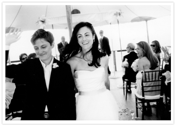 Love how simply gorgeous this celebration was. Nothing fussy or over wrought, just elemental elegance. And the fashion is pretty perfect too. How great is the suited bride’s sock and shoe combo?