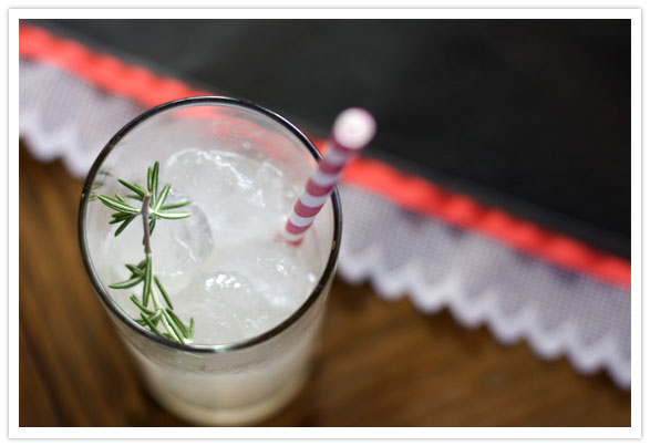 Our black kraft paper table runner, gussied up with ribbon and lace. (Pictured with an Heirloom LA cocktail. Sooooooooooooo delicious. So.)