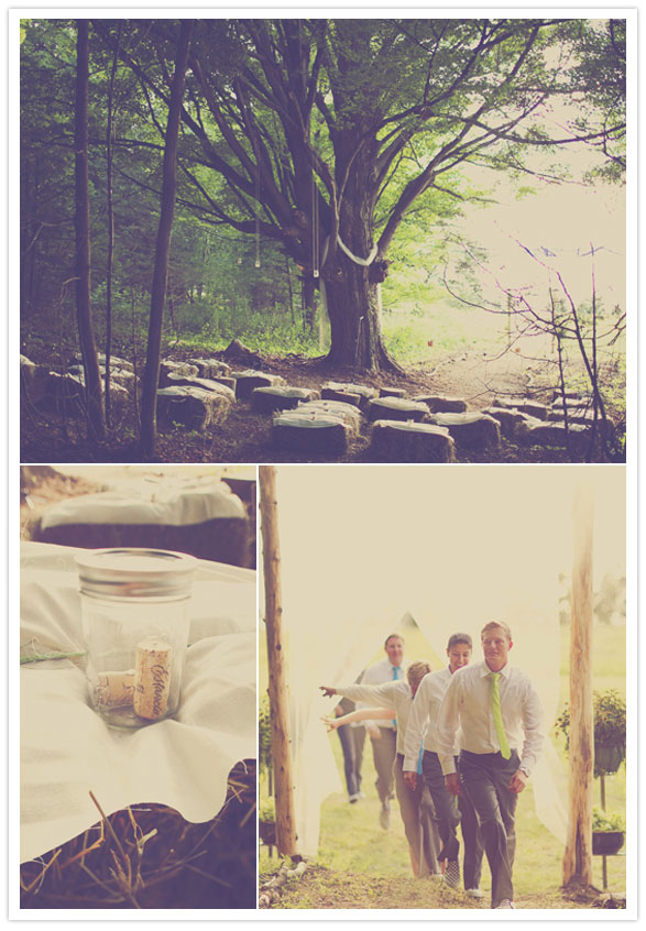 Those paper bags filled with s’mores goodies for favors are perfect – bring on the fire pit. Speaking of, local residents even provided campers for guests to stay in overnight. So fun!