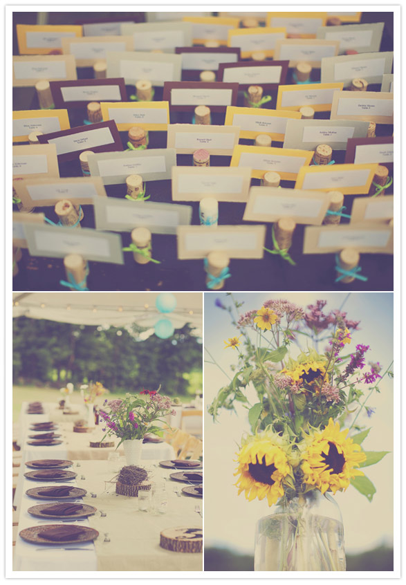 Emily & Ali got super creative with their decor – wine bottle corks, pine cones, wildflowers, nature-ish clippings… such a cute idea and yes, cost-effective!