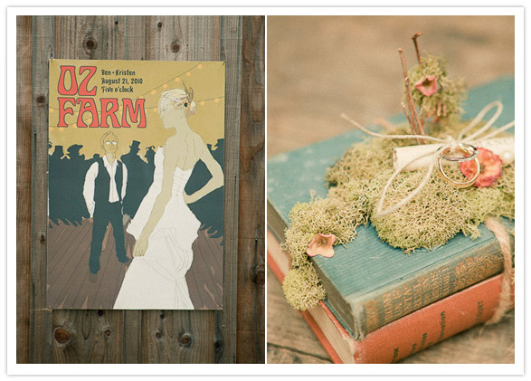 This gorgeous retro-French looking poster featuring silhouettes of the couple was a fab idea! The colors are awesome, too, as is that clever little book/ring pillow.