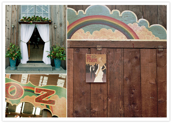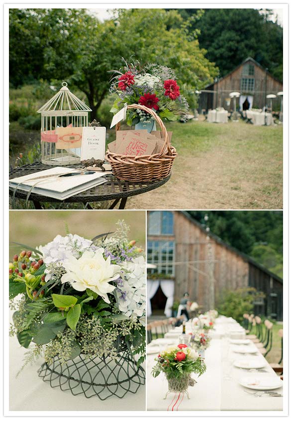 Venue: Oz Farm / Stationery & design: Kristen Landgrebe Vandivier, Charlie Paper / Photography: Josh Goleman, Wedding Artists Collective / Rentals: Classic Party Rentals / Container & decor rentals: Artiste Fleuriste / Wedding coordination: Kristen Carnes (Events Etc.) & Cindy Kahan / Bluegrass band: Knuckle Knockers / Square dance caller: Evie Ladin of the Stairwell Sisters / Flowers: Garden by the Sea / Cake & pastries: Franny’s Cup and Saucer / Hair: Judy Cecere / Gown: Monique Lhuillier / Groom’s wear: John Varvatos / Bridesmaids gowns: Nataya / Flowergirl gowns: Beane and Co. / Groomsmen wear: J.Crew / Veil: Tia Mazza / Shrug: Cassin / Bridesmaids hairpieces: Brenda’s Bridal Veils / Garter: The Sparkling Cocktail / Invitation printing: Night Owl Paper Goods / Rehearsal dinner catering: Bones Roadhouse / Ringbearer book “pillow”: The Dainty Woods / Photobooth props: Maro Designs on Etsy