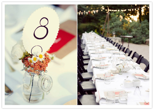 Those pretty table settings look so classy under the strands of lights with the glossy black chairs and white linens. Liz used Ikea tea towels in lieu of paper napkins (cute idea), along with vintage vases, tablecloths and overlays, and count ’em SEVENTY sets of vintage silverware. Yeah, wow.
