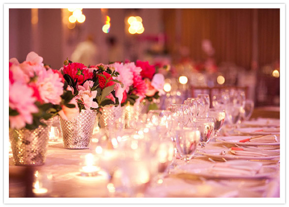 The shiny silver vases and candlelight are the perfect supporting cast for those BEAUTIFUL pink posies!