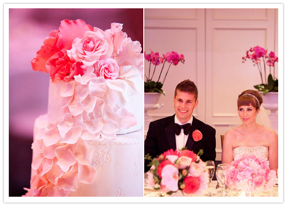 Feeling girly today, ladies? Then we’ve got just the thing for you – Jean-Pierre & Keira’s super glamorous, very pink, and all-around dazzling wedding. Remember the cute pink and gold invitations we posted awhile back? Well the bride is back to share the details from their wedding. Would you believe the whole thing was planned long distance? The event took place in Toronto, but JP & Keira did all the hard work from New York! They even Skyped with vendors. How 2010 of them!