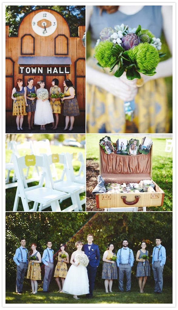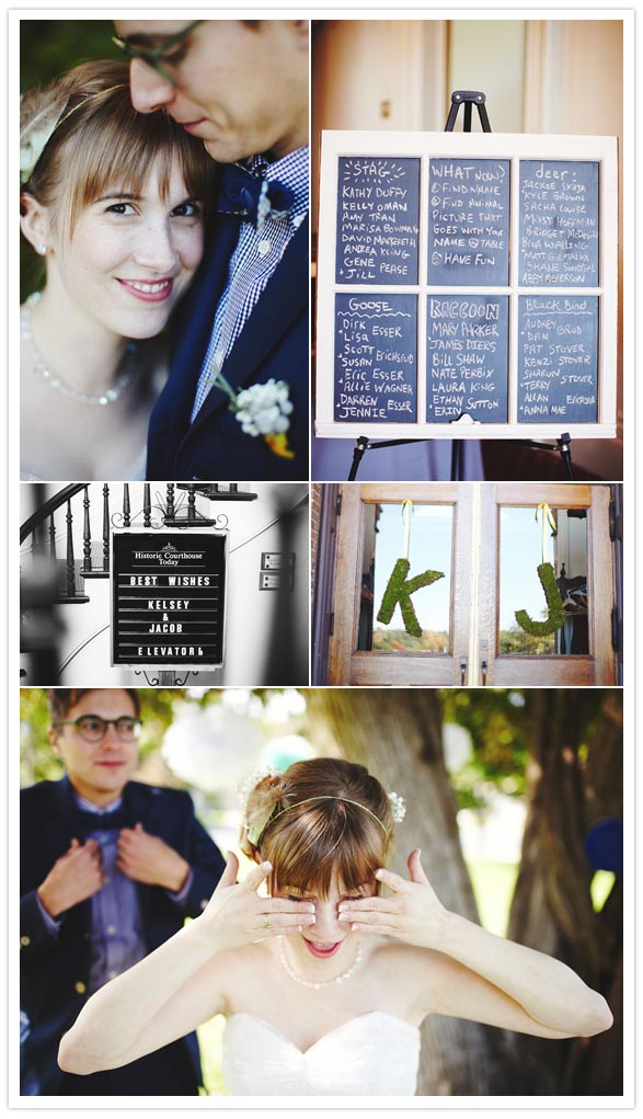 Photography: geneoh photography / Videography: Eduardo Hernandez / Catering: Brasa Rotisserie / Wedding Dress: vintage, found at Lula / Bridesmaids dresses: Calpurnia Peach / Groom’s Suit: Shades of Greige purchased at Black Blue / Groomsmens attire: J.Crew & Urban Outfitters / Venue: The Washington County Historic Courthouse / Flowers: Mary Parker & Sassafras Floral + Garden Design / Rings: Knox Jewelers / Ceremony Music: Sarah Elhardt, Piano, Benson Ramsey, Guitar/Vocals / Cupcakes: Roseville Bakery / Squirrel Cake Topper: Megan Bogonovich / Hair & Makeup: Adeline Wright / Custom welded cupcake tree: Kelly & Lynda Stover / Decor, invitations, all paper goods and handmade goodness: The bride, Jessica Sondreal, and Mary Parker / Animal figurines: thrifted / Chalk window for table assignments: Megan Stedil / Table “number” animal art: Torey Bonar / Photobooth: The Traveling Photo Booth / Petting zoo photo location: Country Sun Farm / Officiant: our dear friend James Diers of Halloween, Alaska