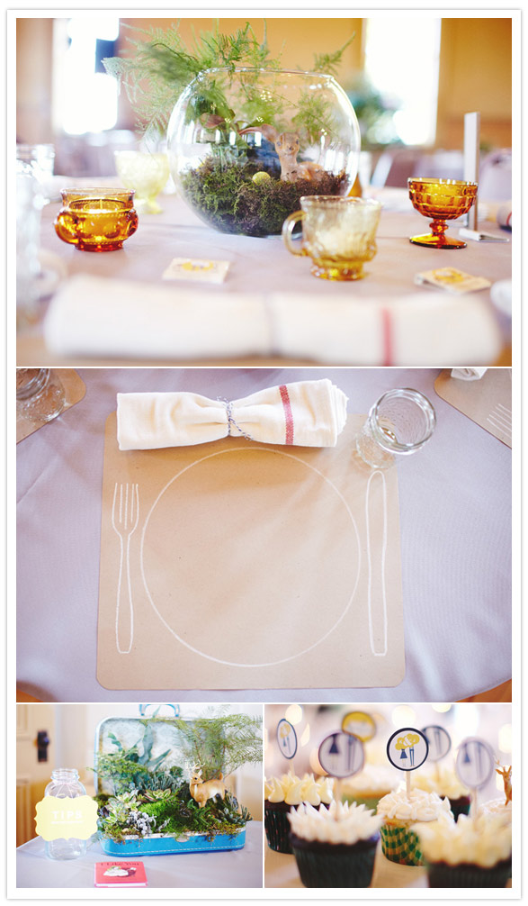 The vintage tabletop finds are sooo great, almost as fabulous as the animal art paintings that were used as table numbers. What a creative (and cuuute) idea!