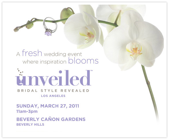 Brides! Grooms! Want to go to the Unveiled event this Monday the 28th from 4:00-8:00 in Beverly Hills? The first 10 people to leave a comment get a free ticket. Oh, and pop by and say hi to Kristina and Amanda around 5:30 in the social media booth!