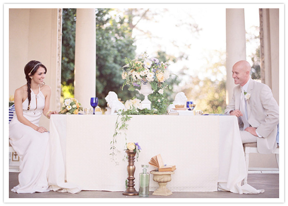Pretty blues and whites, plus a goddess-y dress are the perfect nods to something Greek.