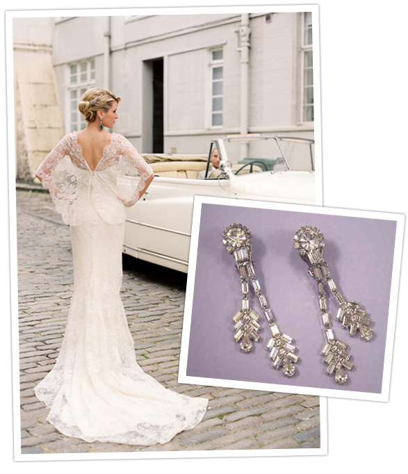 Do you have any recommendations for jewelry to complement the lace dress I’m wearing this summer? My dress is being custom made but is inspired by the Erato by Elie Saab (available from Pronovias), which I spotted on Once Wed.