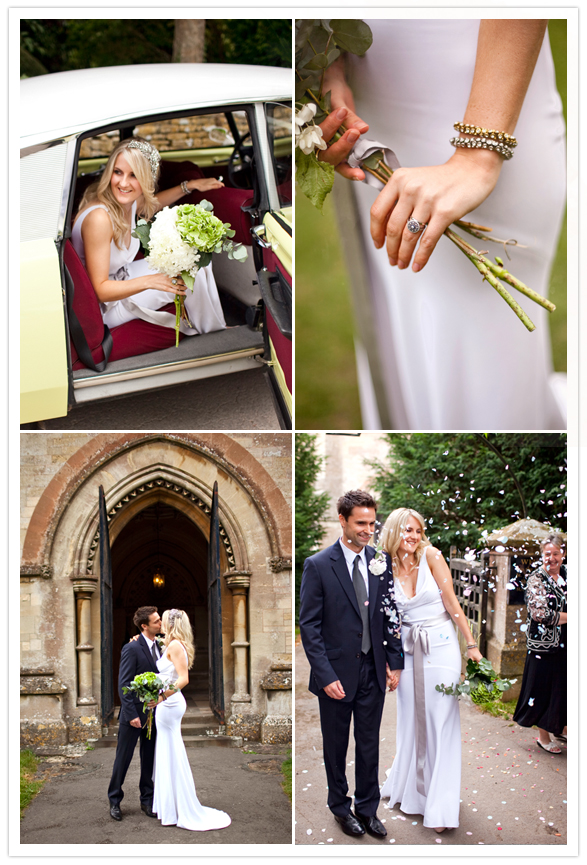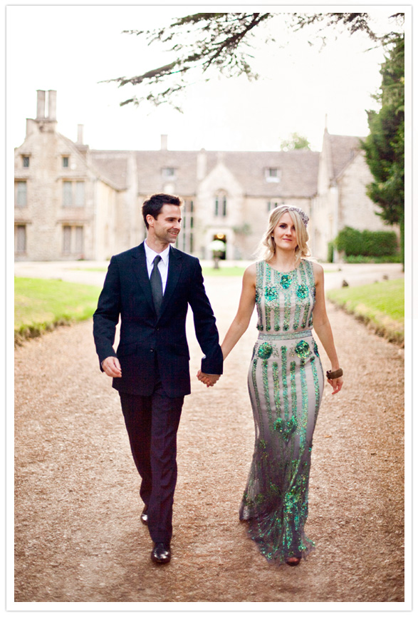 Photography: Caught the Light / Venue: Chavenage House / Car: vintage Citroen / Wedding dress: Valentino / Reception dress: Jenny Packham / Shoes: Miu Miu & COS / Headpiece: Jenny Packham / Engagement ring: Lucie Campbell / Brass cuff (with green dress): Marni / Suit: Reiss / Shoes: Poste / Ceremony & bride’s flowers: done by the bride and her sister, bought from Montpellier Flowers in Cheltenham / Reception flowers: Zita Elze / Catering: Relish, Cirencester / Hair: Holly Parkinson @ Blushes / Invites & Paper: bride & groom / Zinc hearts / Daylesford Organic / Cakes: Daylesford Organic