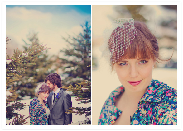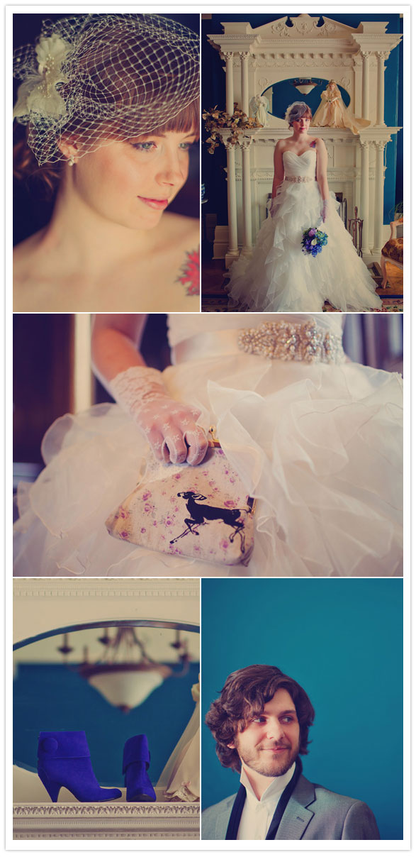 Love the way Sarah & Brandon put their own unique spin on wedding style – those indigo boots are just waaaay too cute. They, along with her super amazing floral jacket, are from ModCloth. The vintage lace gloves are such a sweet touch, too.