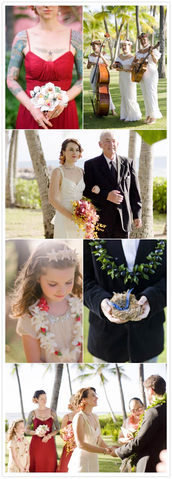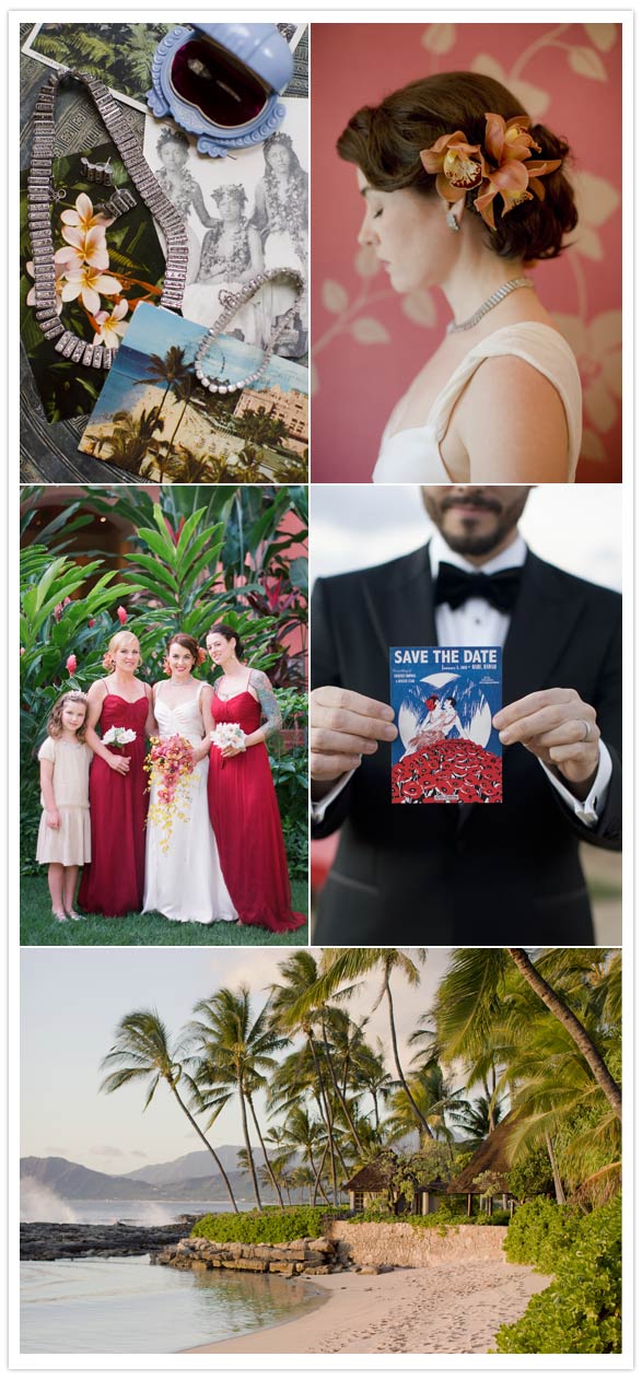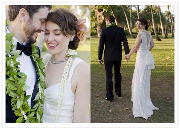 Photography: Corbin Gurkin / Venue: Lanikuhonua / Coordinator: Dianna Shitanishi / Cake: JJ Bistro & French Pastry / Flowers: Flower Farm Inc. / Music: Puamana (during ceremony & cocktail hour), Hot Club of Hulaville (during reception) / Rentals: Royal Party Rentals / Bride’s Dress: Theresa Laquey Couture / Groom’s Tuxedo: Hugo Boss / Letterpress: Panaroma Press / Hair & Makeup: Sarah Pacheco / Bride’s Jewelry: Link2Jewels / Bridesmaids Dresses: Amsale / Flower Girl Tiara: The Mermaid’s Palace /