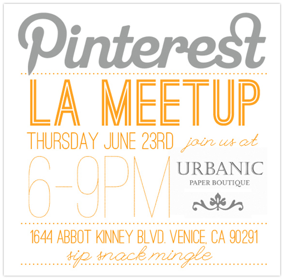 Come hang out with fellow Pinteresters at a little party at Urbanic between 6-9pm in Venice, CA. There will be drinks, snacks and you can meet Ben {Pinterest’s founder!} Please RSVP!
