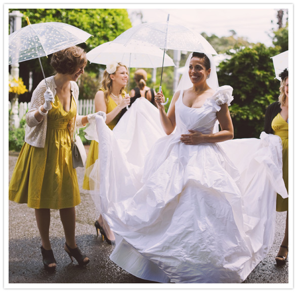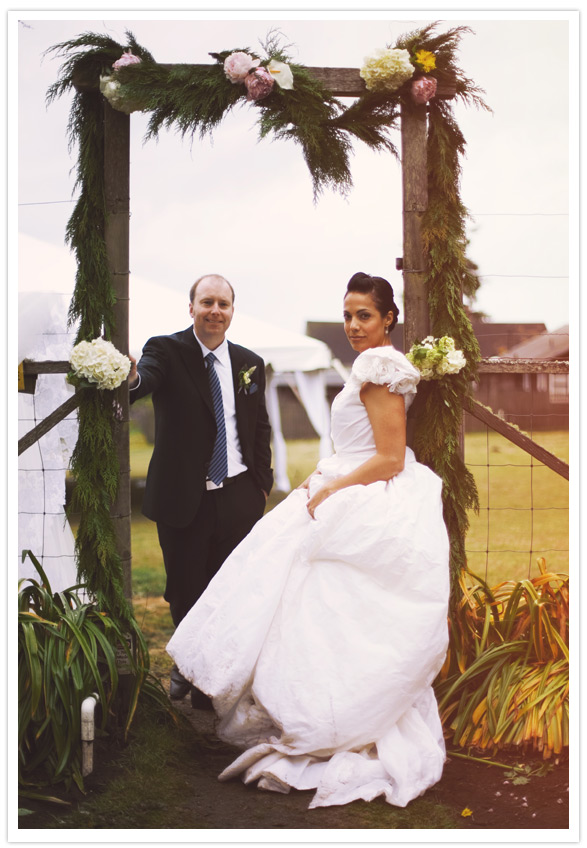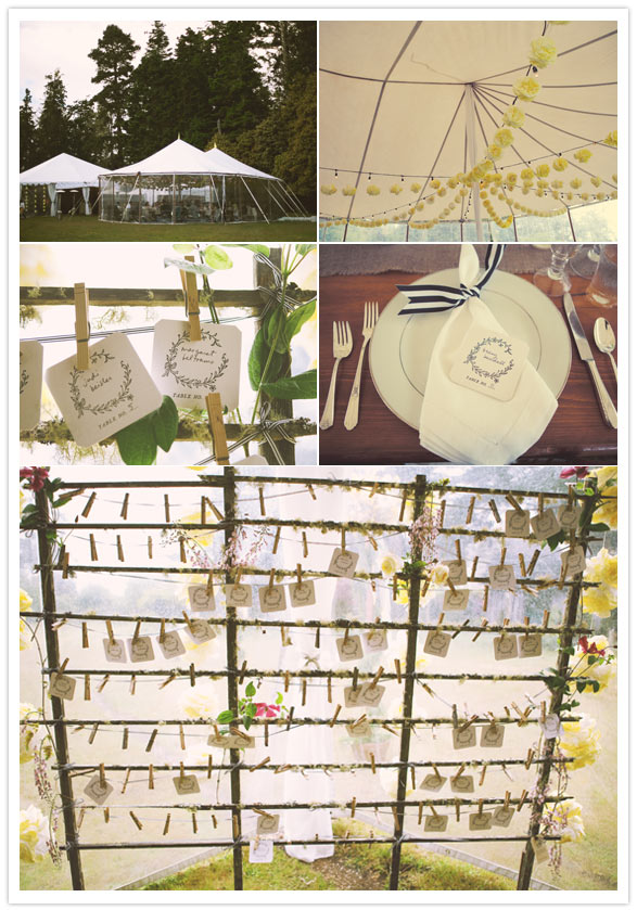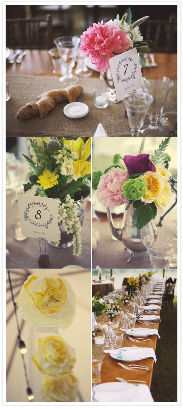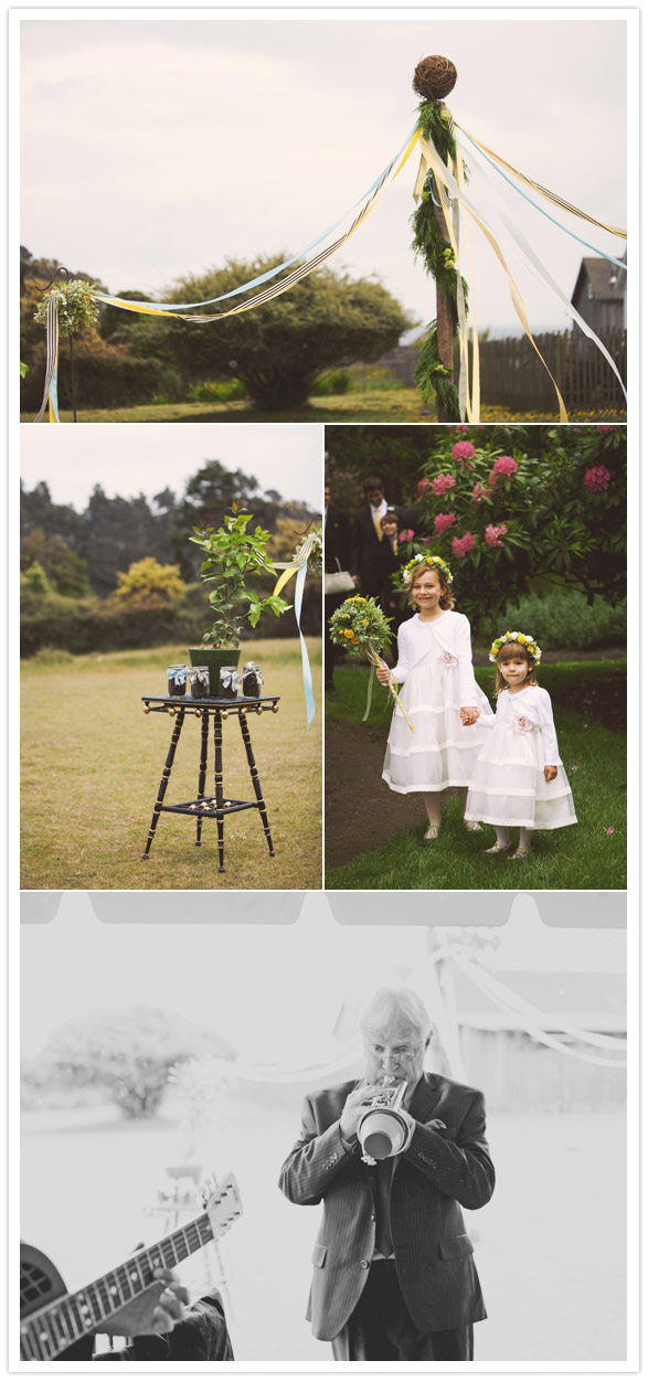 Total bummer that no one got to see the beribboned maypole Andie + Bo designed as the alter because of the last minute addition of a rain tent for the ceremony.