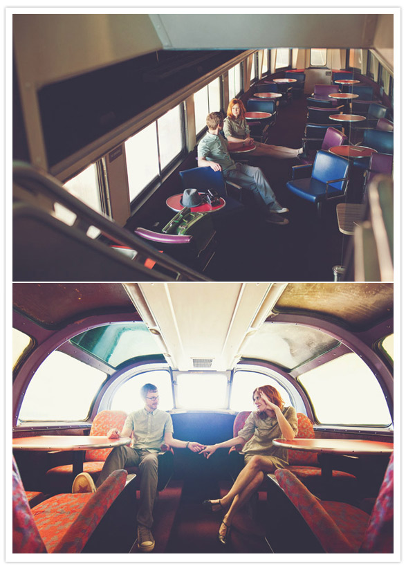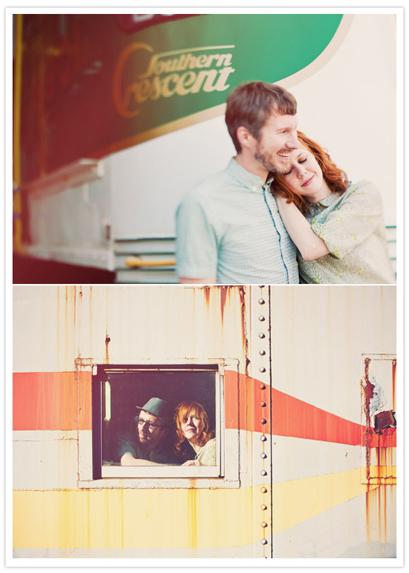 Trains, buses and automobiles! It’s almost Friday and we can’t shake the idea of boarding one of these vintage beauties and cruising America’s railroads – one hand resting out a window, the other holding a fancy cocktail. Thanks to the talented W. Scott Chester Photography, we get to step into this gorgeous cinematic Atlanta landscape full of forgotten treasures (and Scott’s sweet vintage Thunderbird) for Shelli + Chris’s engagement photos. C’mon n’ ride the train, ride it up!