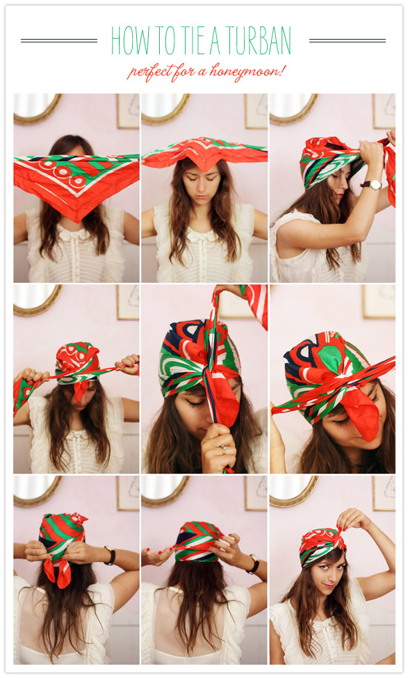 Amanda and her beau are heading for an Italian vacation in a couple weeks, and she ran across this fun turban tutorial on Etsy’s French blog while looking for cute fashion for the trip. ‘twould be such a fun accessory to wear on your honeymoon while shopping with your new hubs, or taking a gondola ride down the romantic canals in Venice. Magnifico!
