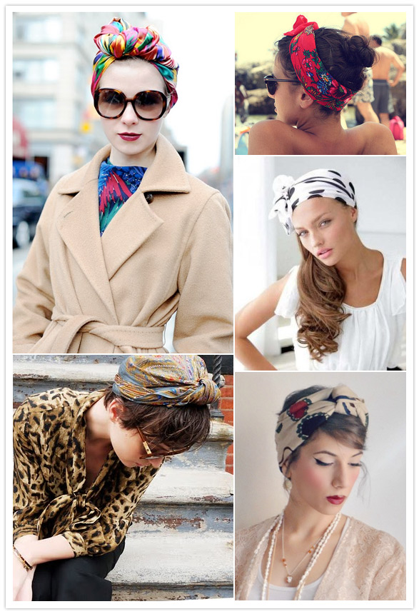 {clockwise from left: colorful turban, red floral turban, white turban, Molto Fashion, The Glamourai}