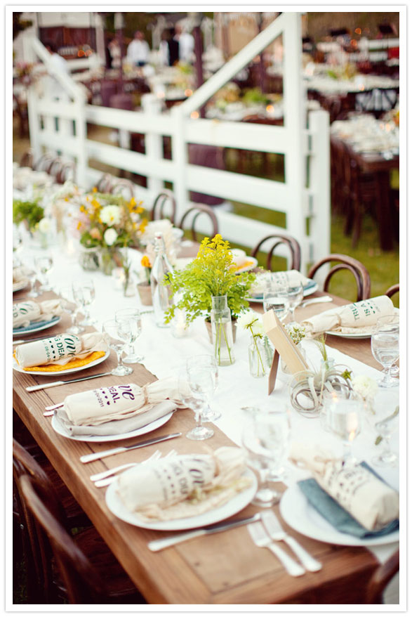 We’re beginning to see a theme this week: dream vendors coming together to create pure wedding magic – we love it! So, let’s keep going with it, shall we? Jessica + Joe’s wedding is sure to get your inspiration bug a fluttering. If it’s not the florals, it’s going to be Jessica’s Reem Acra wedding gown, or their table setting, or the screen printed tote bags, or their scrumptious “sweets stable”, or even their custom wine labels, that you fall in love with. Promise. Bringing you this perfectly crafted Jewish/Portuguese/Catholic timeless wedding, inspired by a rustic European farm look, are the styling masterminds of Bash, Please, along with one of our favorite photographers, Sarah Yates. Double threat!