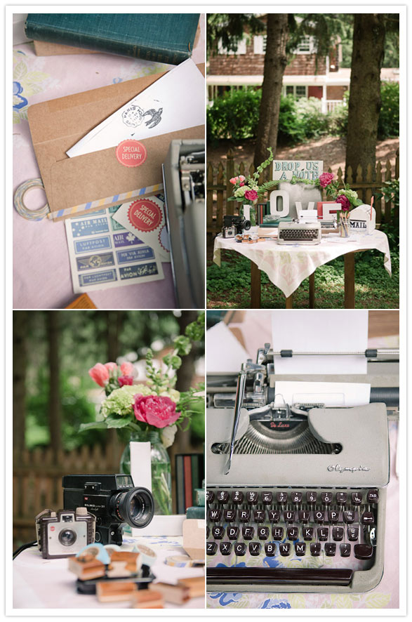 Gary also hand painted and assembled the mailbox at our “guest book” table. We asked everyone to type us a note and put it inside the mailbox. On our one year anniversary we’re going to crack it open and read the notes. Gary also made the board with chicken wire so we could include old family photos mixed in with Polaroids that had been taken by our friends throughout the week leading up to the wedding.