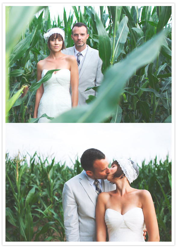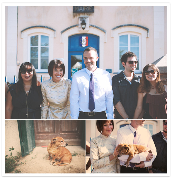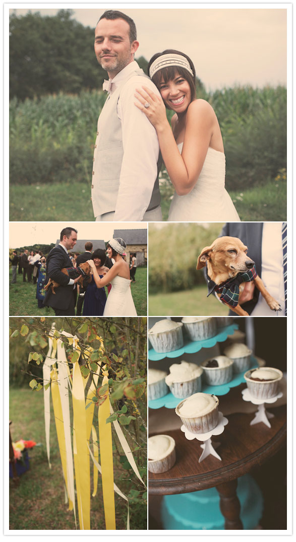 Photographer: Claire Eliza / Bride’s dress: Blue by Enzoani, purchased at the White Gown in Brooklyn, NY / Bride’s headpiece: Lace tie cap veil: Poshveils, headband: Tand3m / Bride’s shoes: Toms / Earrings: borrowed from friend / Groom’s suit: J.Crew (suit & shirt), MrPorter (tie) / Groom’s shoes: Jack Purcell / Dog outfit: Custom suit from BonChicBonChien / Rentals: BFM Location / Audio: Electronic Loisirs / Catering: MJ Prestige / Cupcakes: Claire / DJ: OutOne /